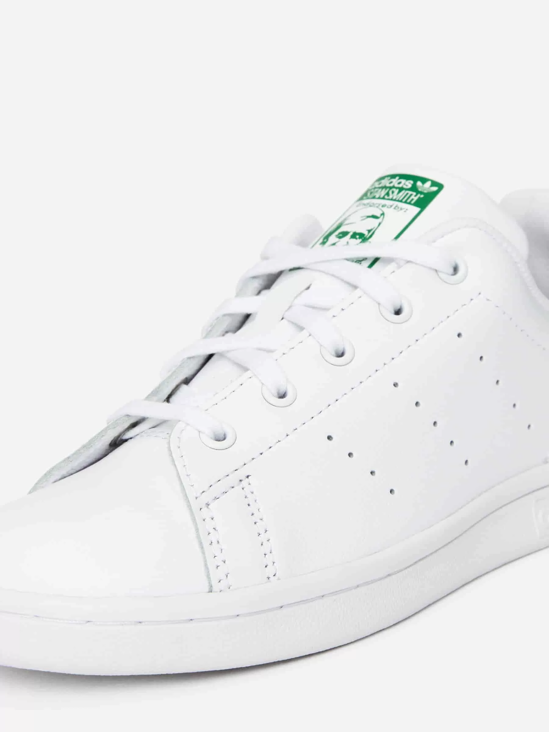 Children’s version of the iconic, minimalistic tennis shoe Stan Smith, named after the American tennis player. A lace-up style built with a soft and pliable full-grain leather on a tonal rubber cup sole. Logo on heel patch.