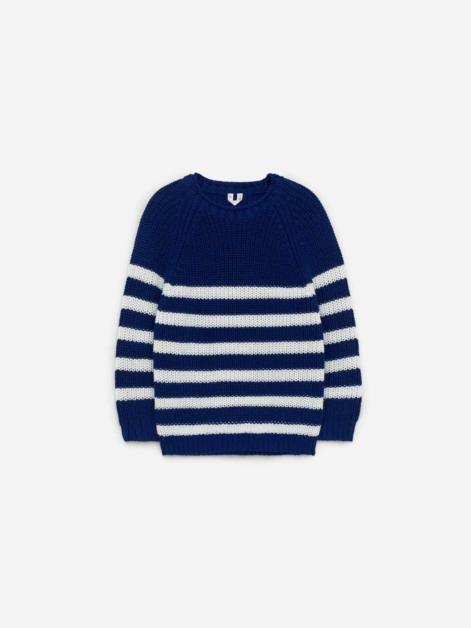Chunky jumper knitted in a half cardigan stitch. An oversized style with raglan sleeves. Ribbed trims.