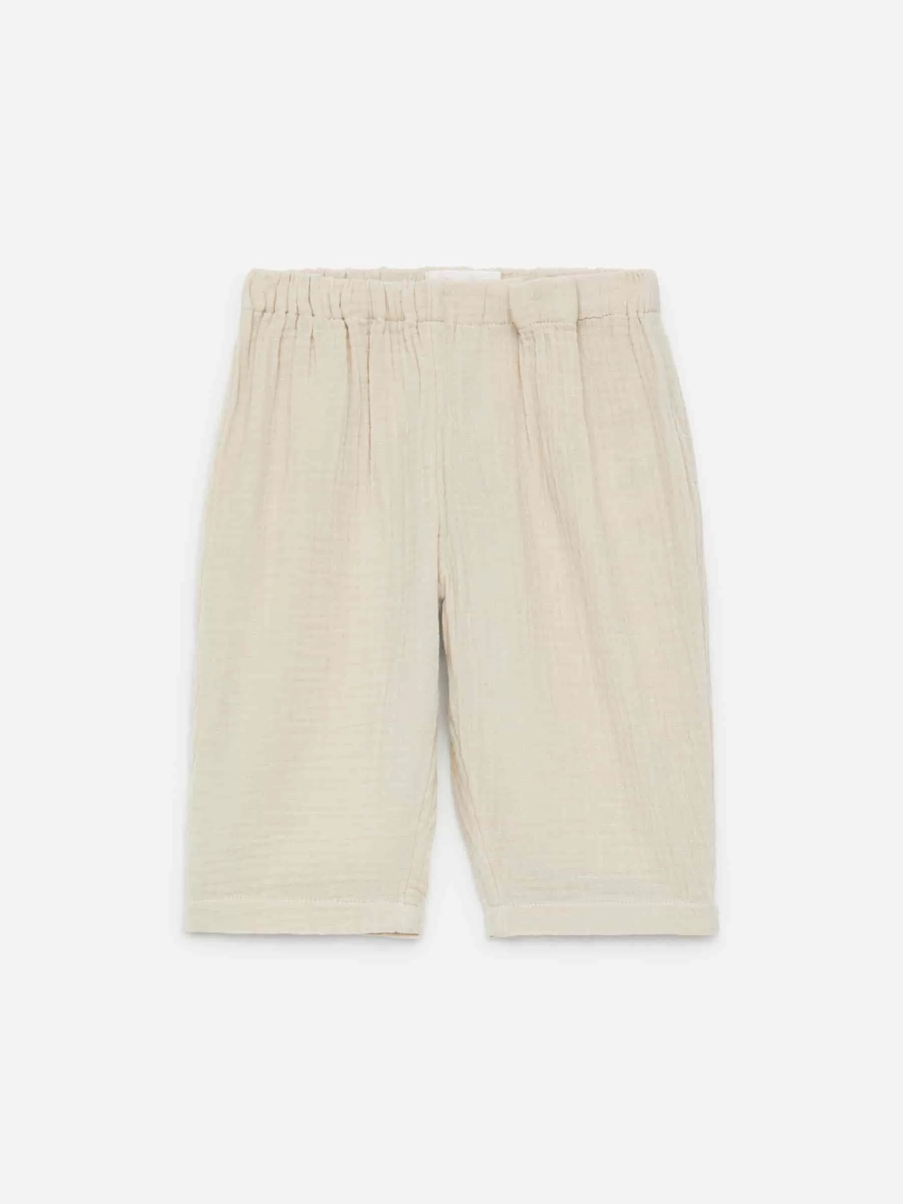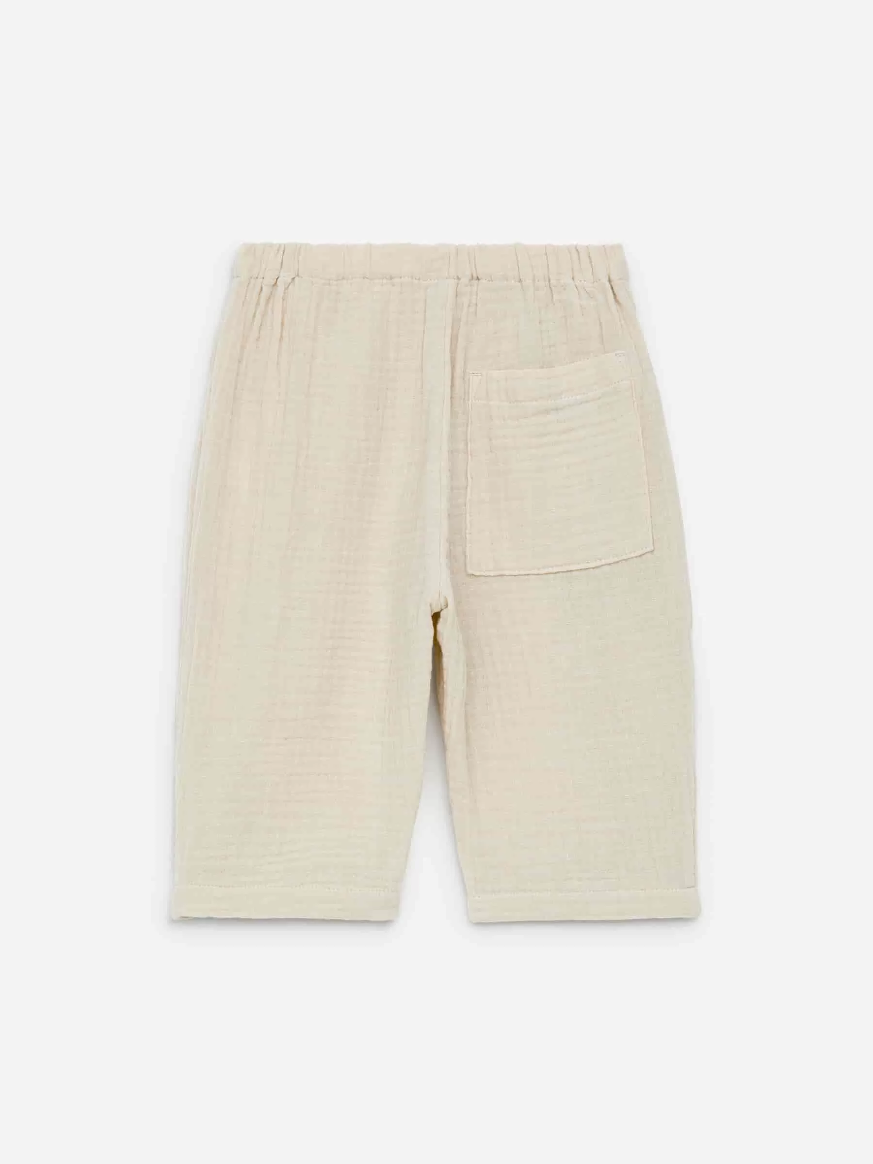 Loose-fitted trousers in a soft muslin weave made from cotton. Styled with an adjustable waistband and a single back pocket.