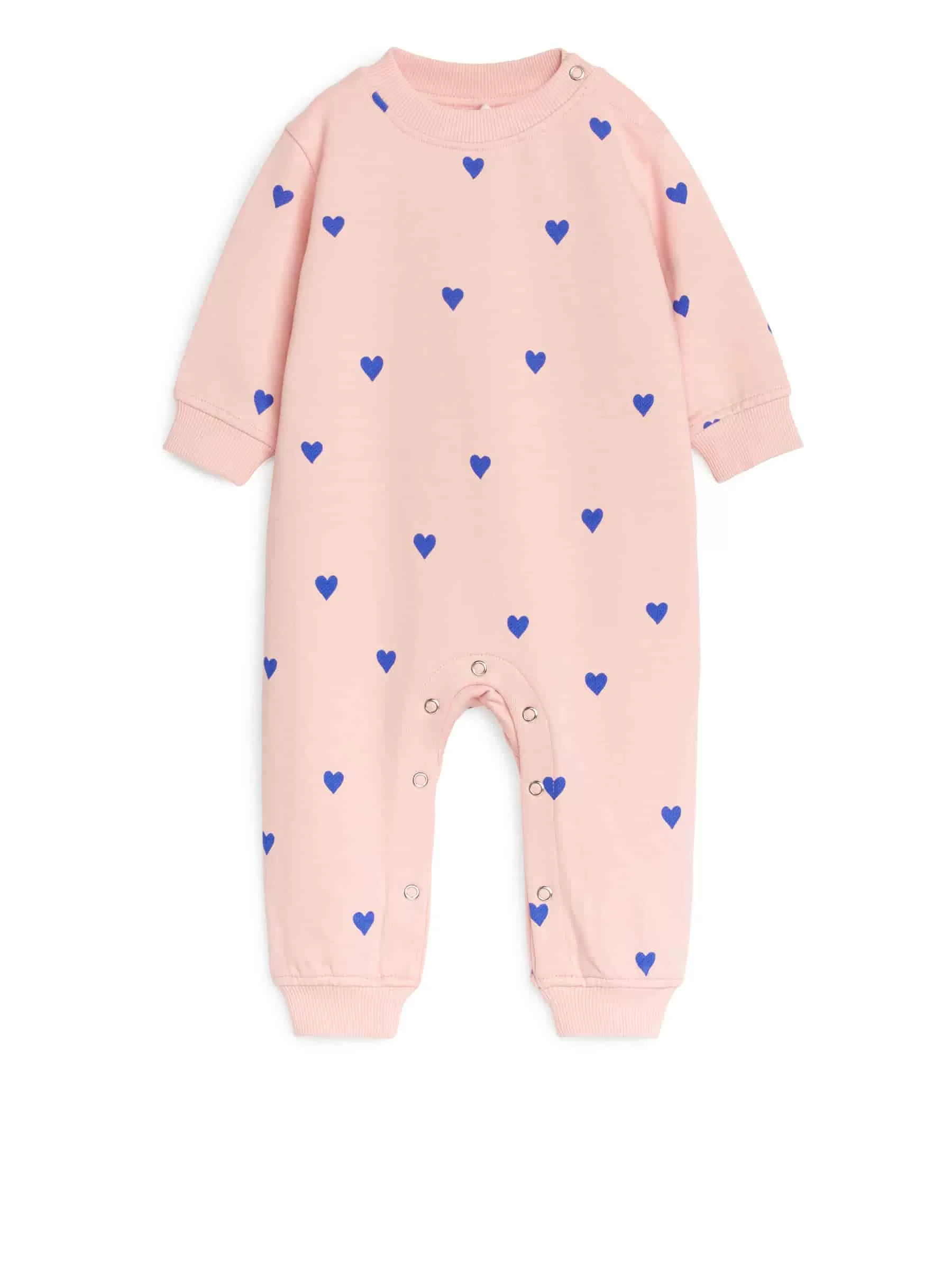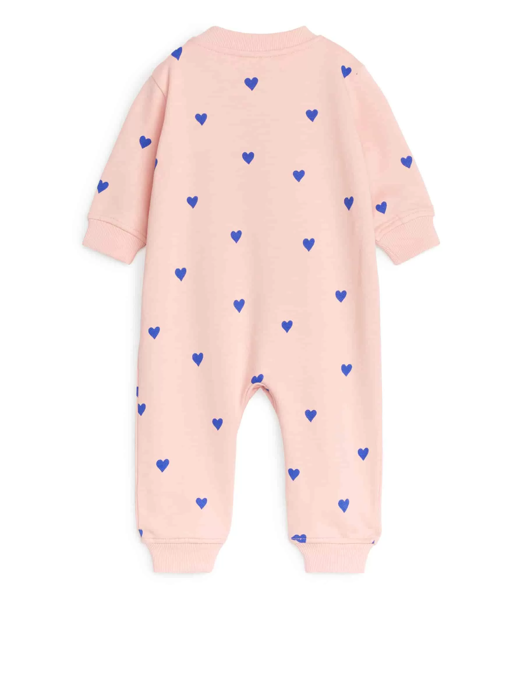 Overall made in a soft French terry fabric made from cotton. Cut for a regular fit and styled with ribbed trims. Snap buttons in crotch and at shoulder for easy dressing.