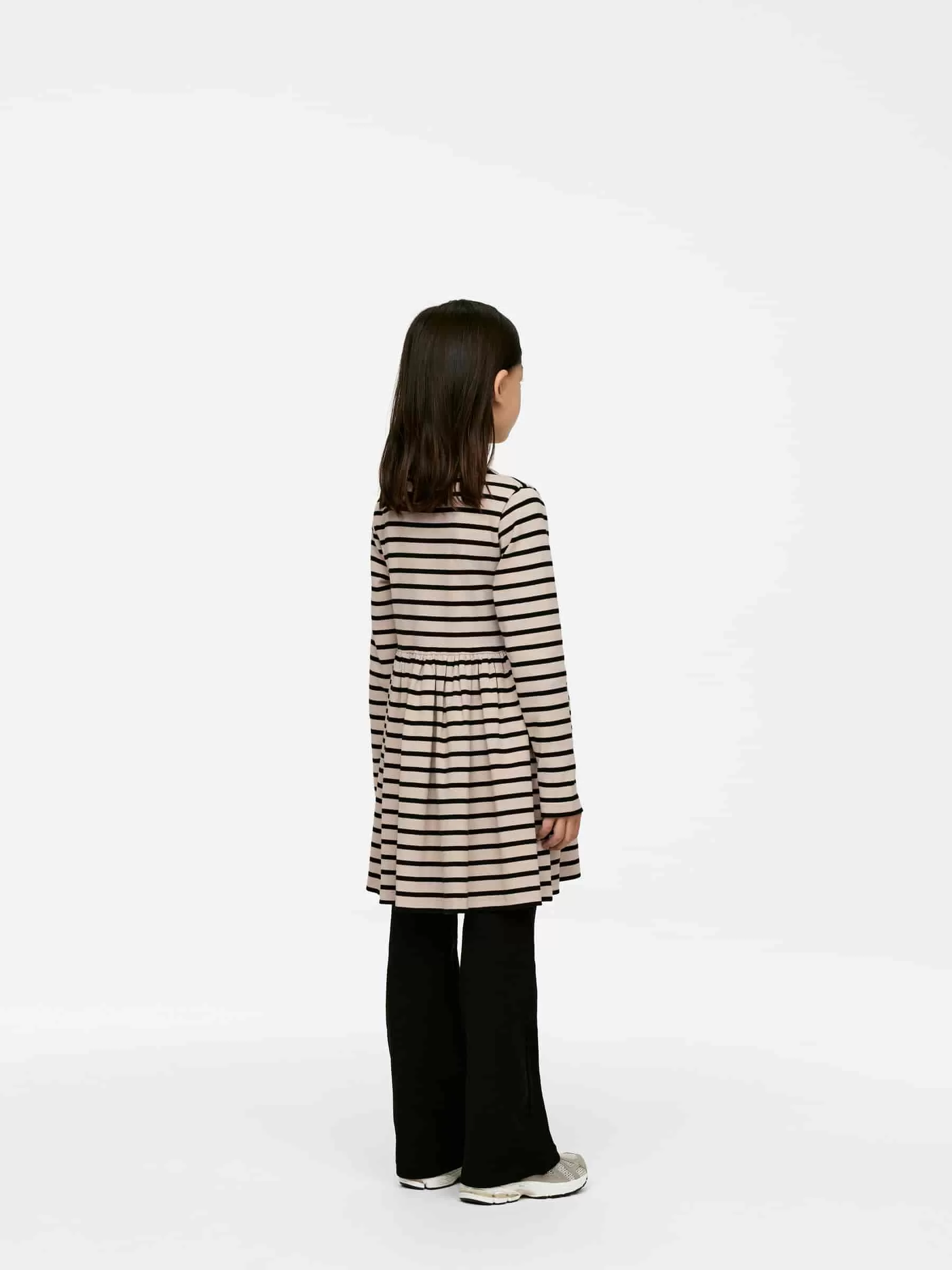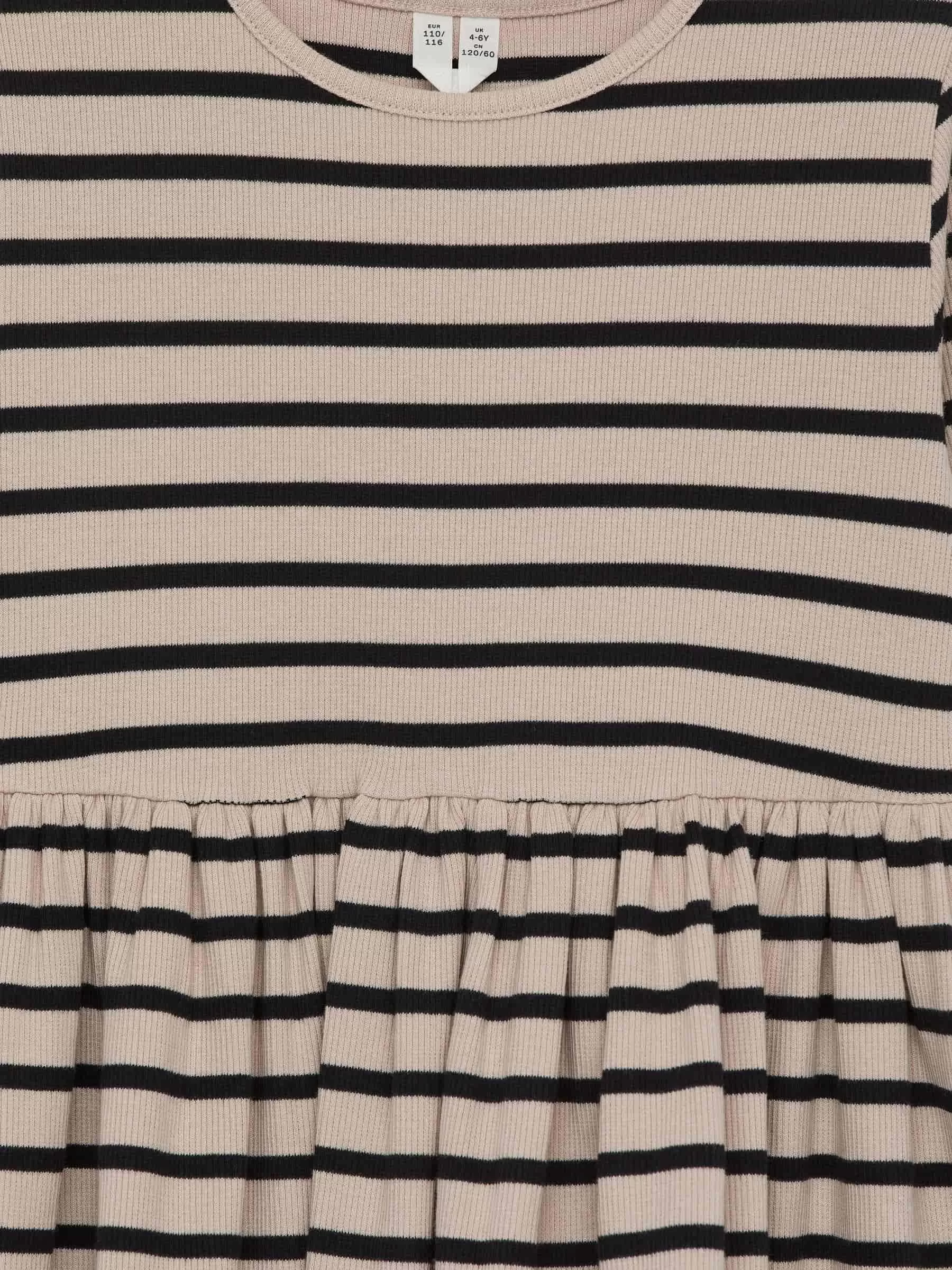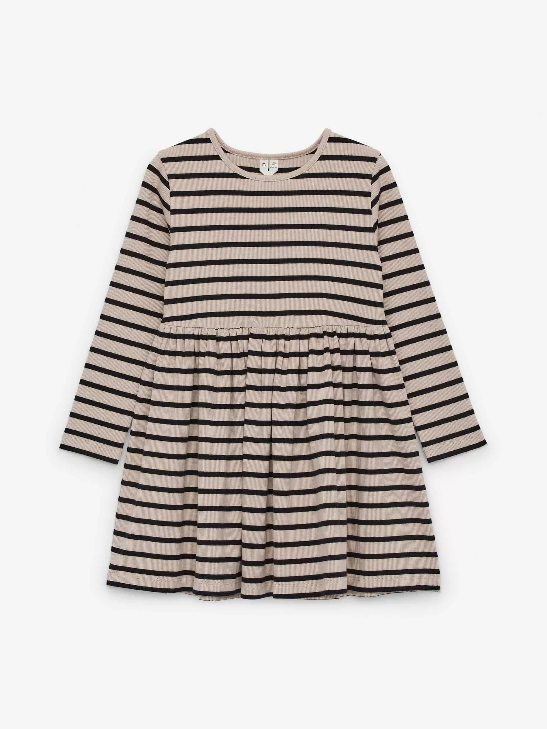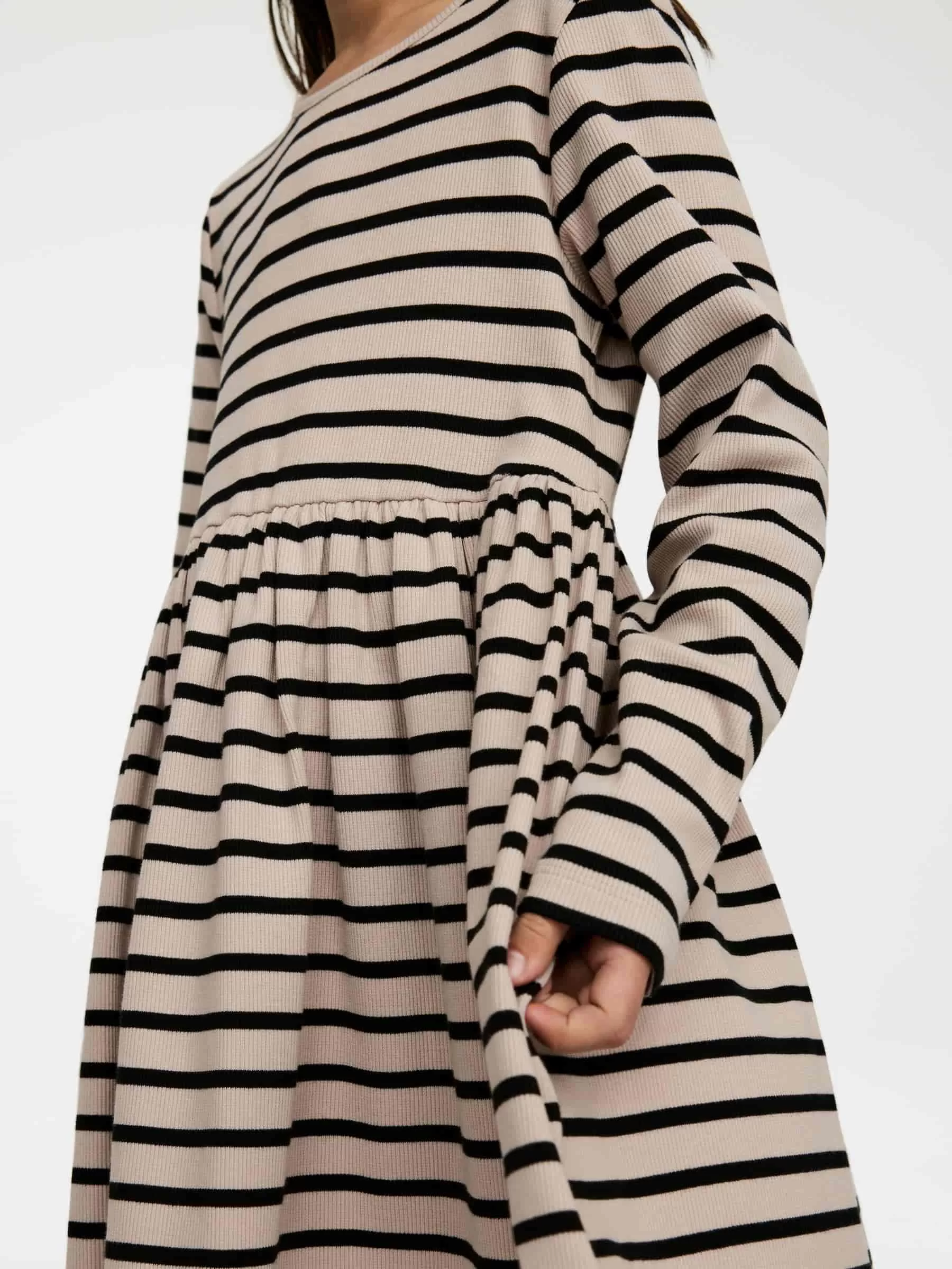 Rib-knitted dress crafted from cotton with a hint of elastane for stretch. A long-sleeved style with gatherings at waist.