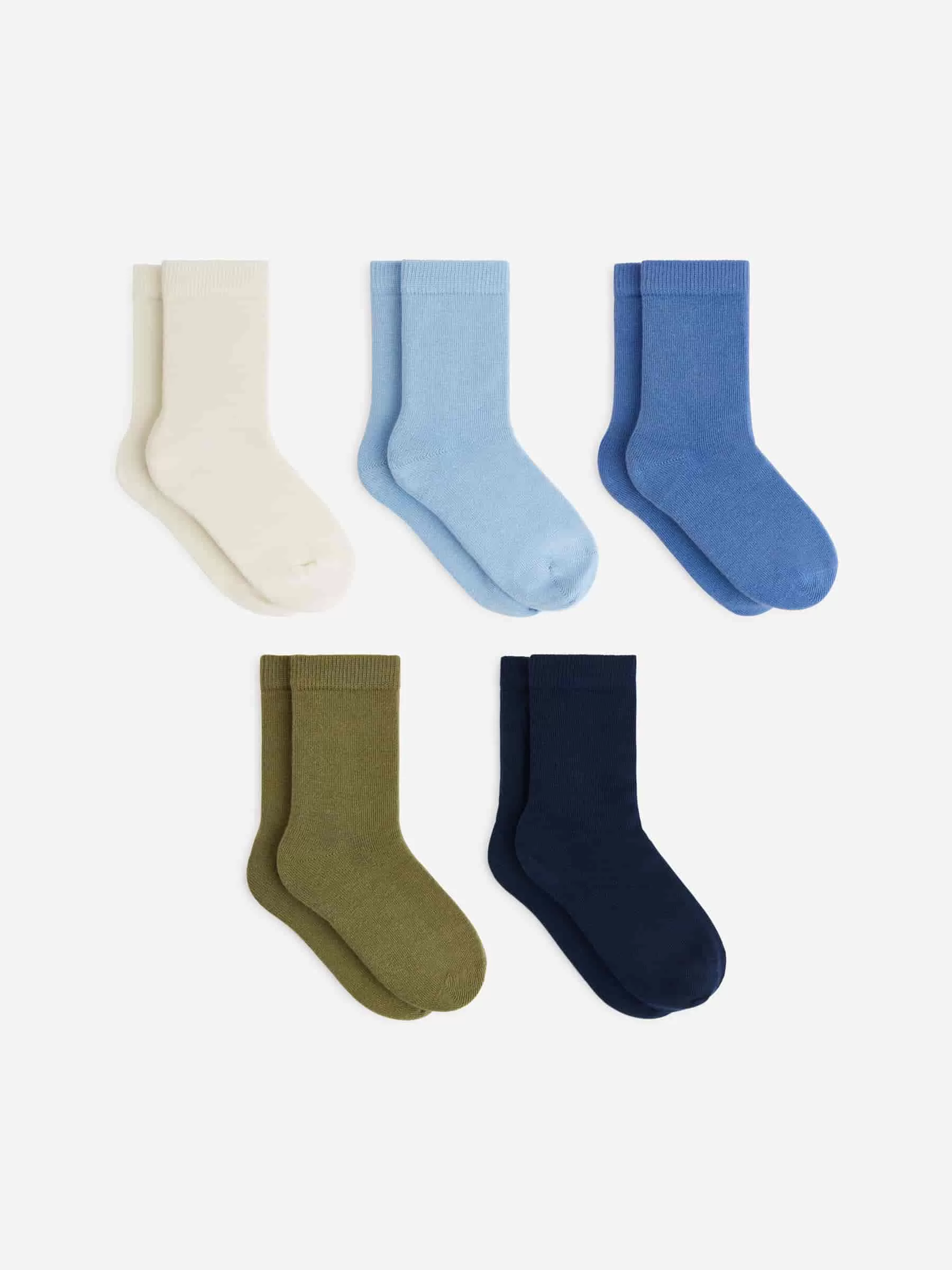 ARKE Children Cotton Socks Set of 5 Blues/Multi-Colour