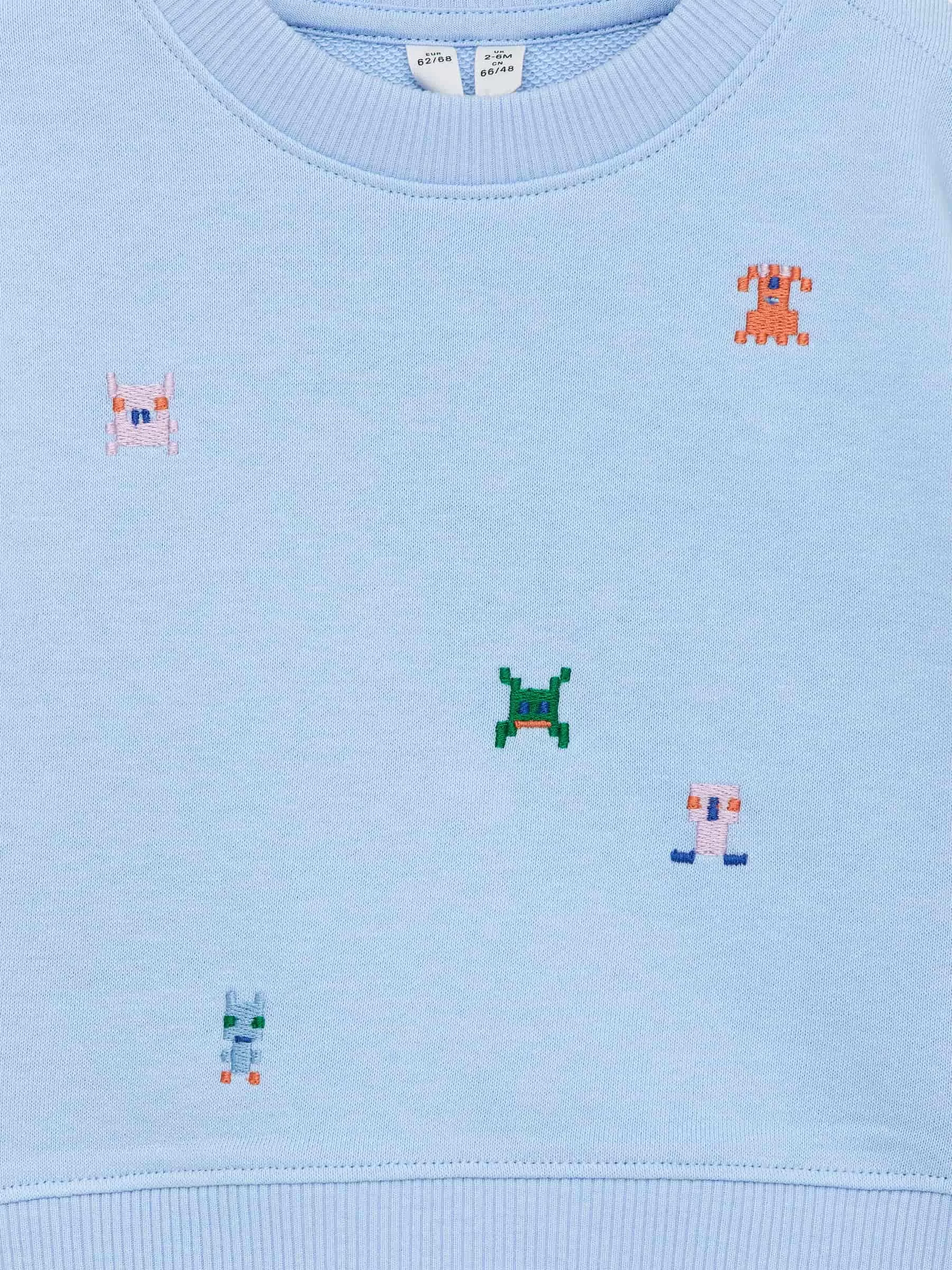 ARKE Children Embroidered Cotton Sweatshirt Light Blue
