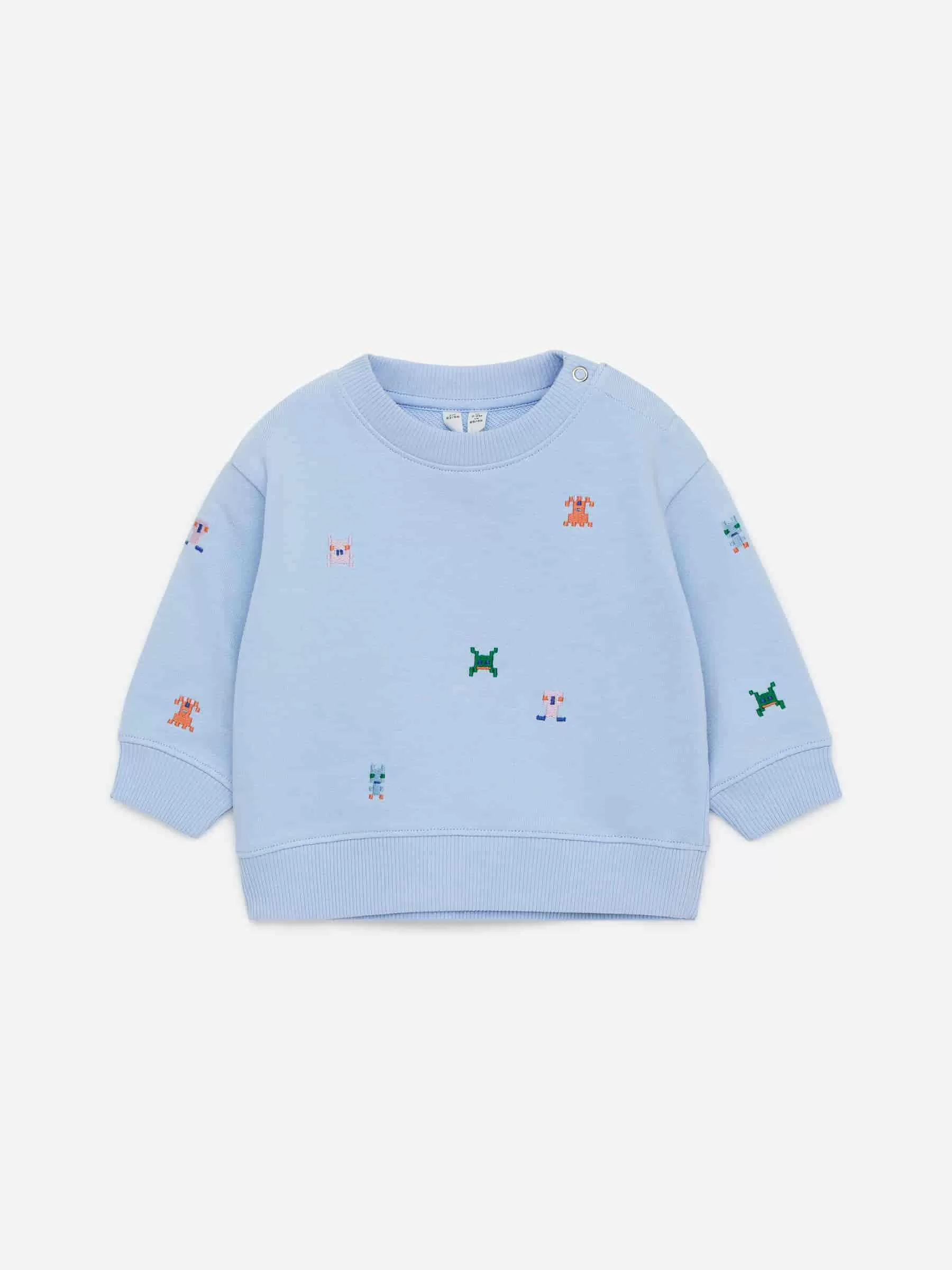 Regular-fit sweatshirt with embroidered detailing. This style is made from cotton with a soft, brushed inside. Press button on shoulder for easy dressing and ribbed trims.