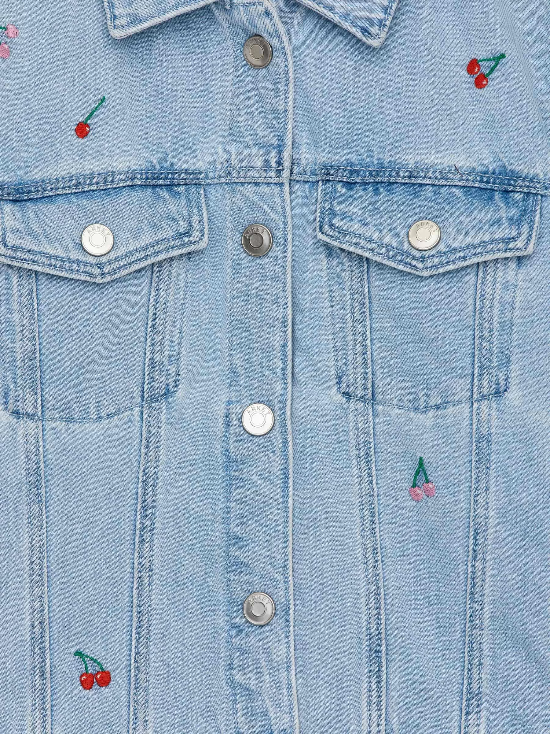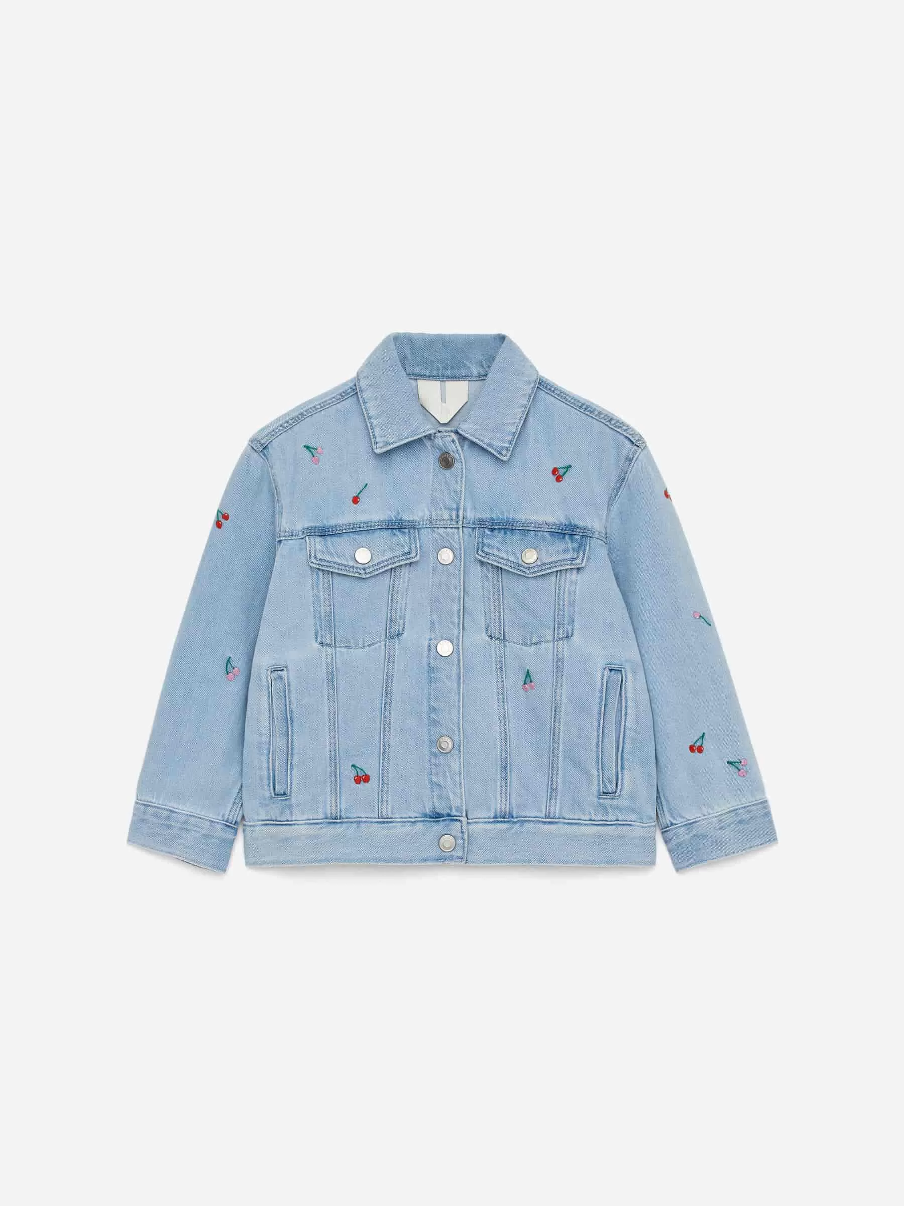 Classic denim jacket with embroidered detailing, patch pockets at the chest, and low welt pockets.
