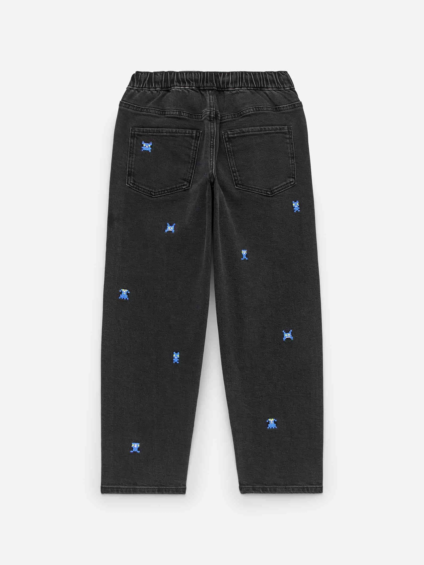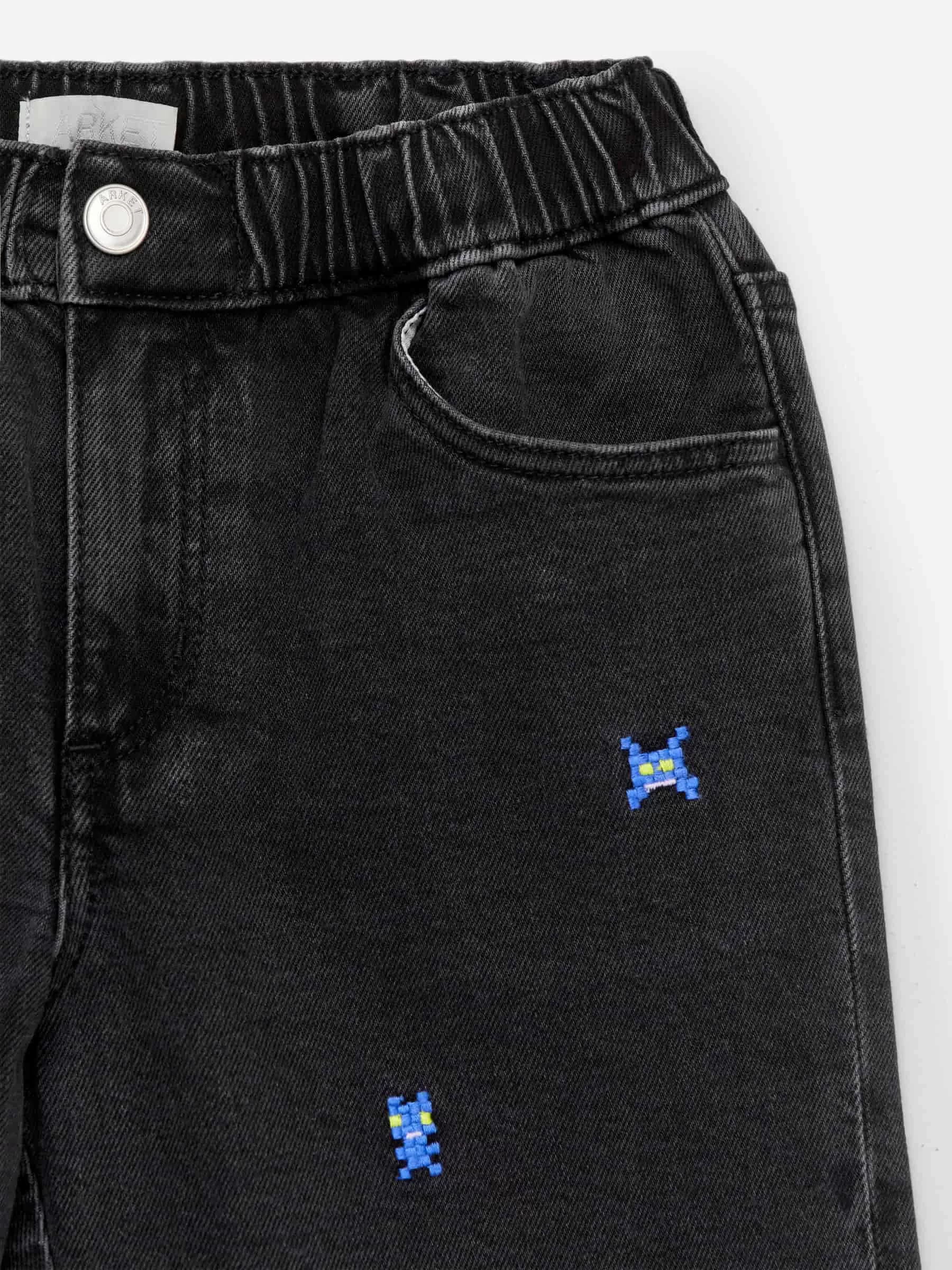 ARKE Children Embroidered Denim Trousers Off Black