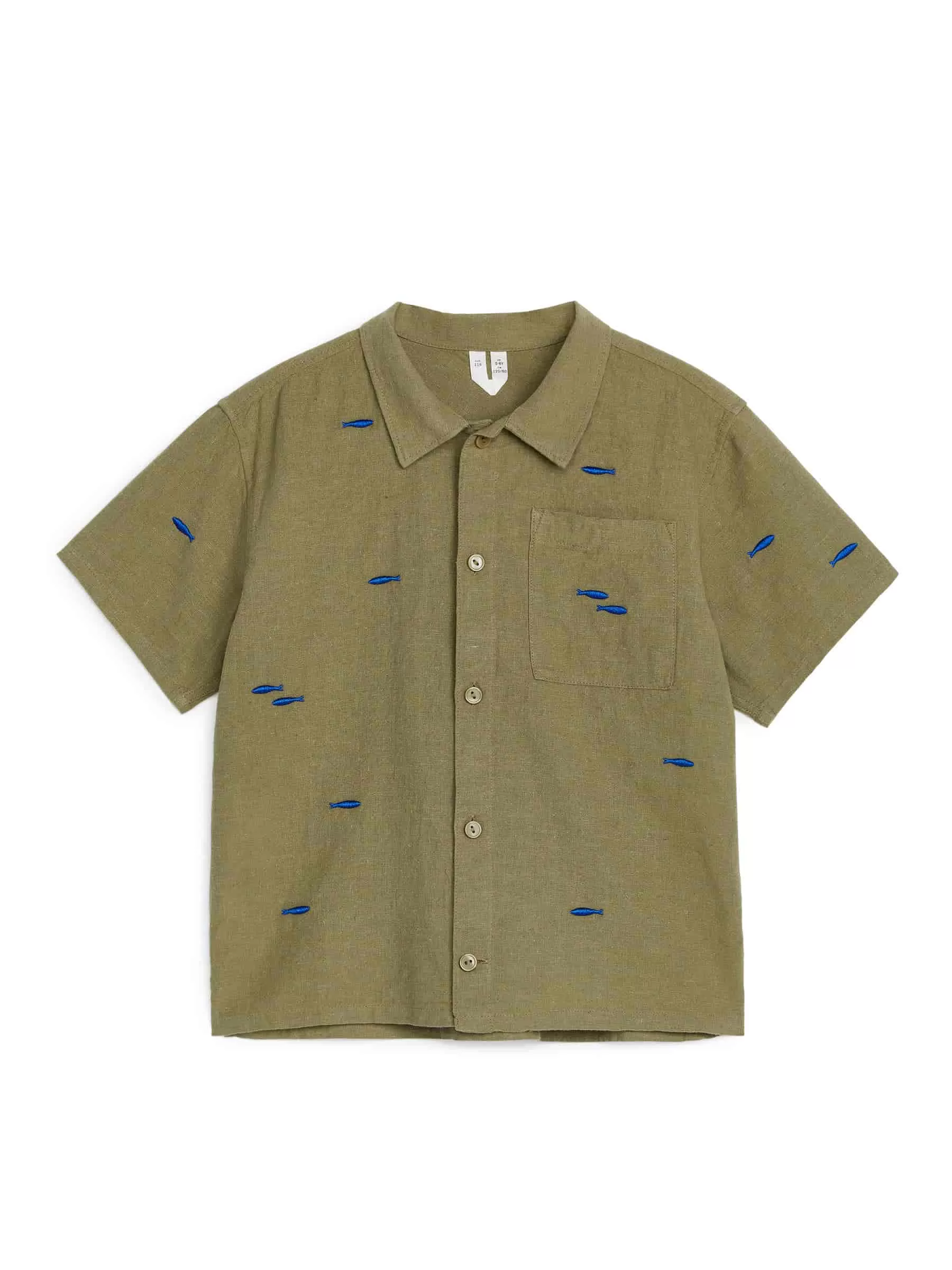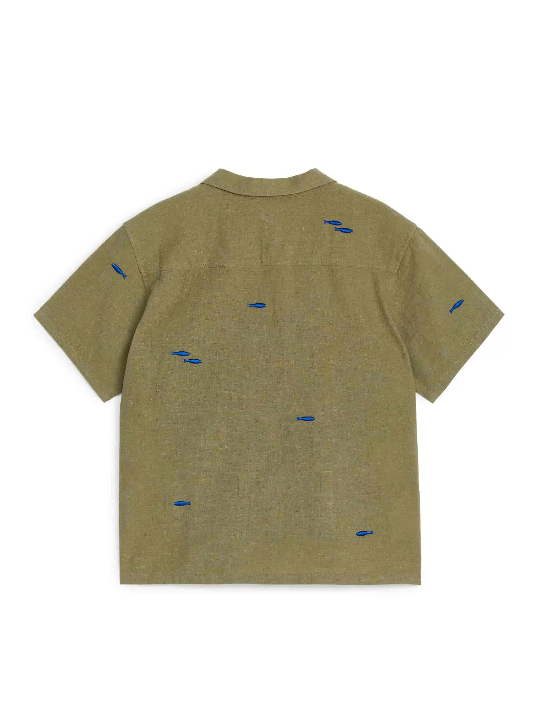 ARKE Children Embroidered Linen-Cotton Shirt Khaki Green