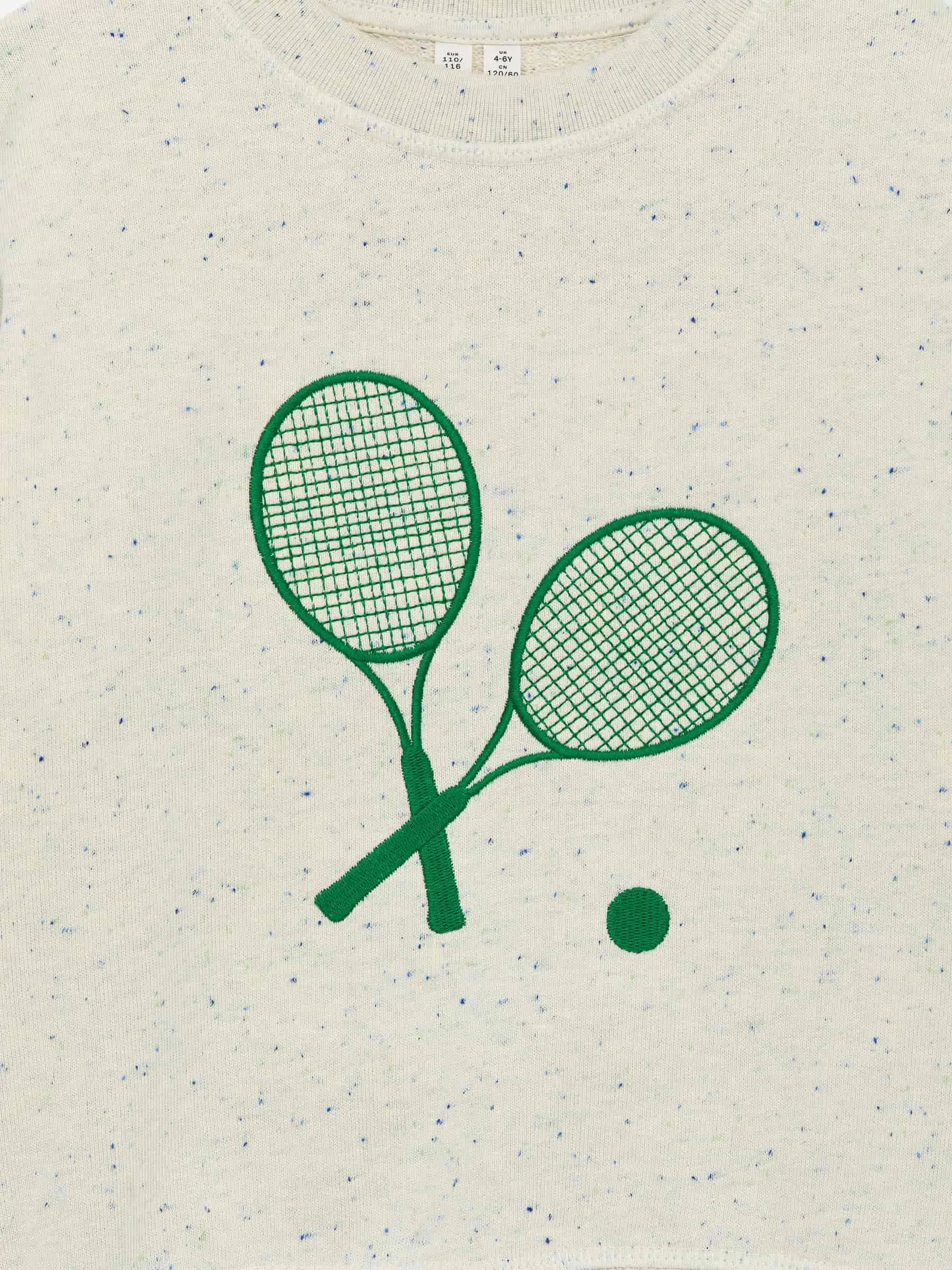 Sweatshirt crafted from a soft cotton terry with neps effect and embroidered detailing. A crew-neck style cut for a relaxed fit. Ribbed trimmings.