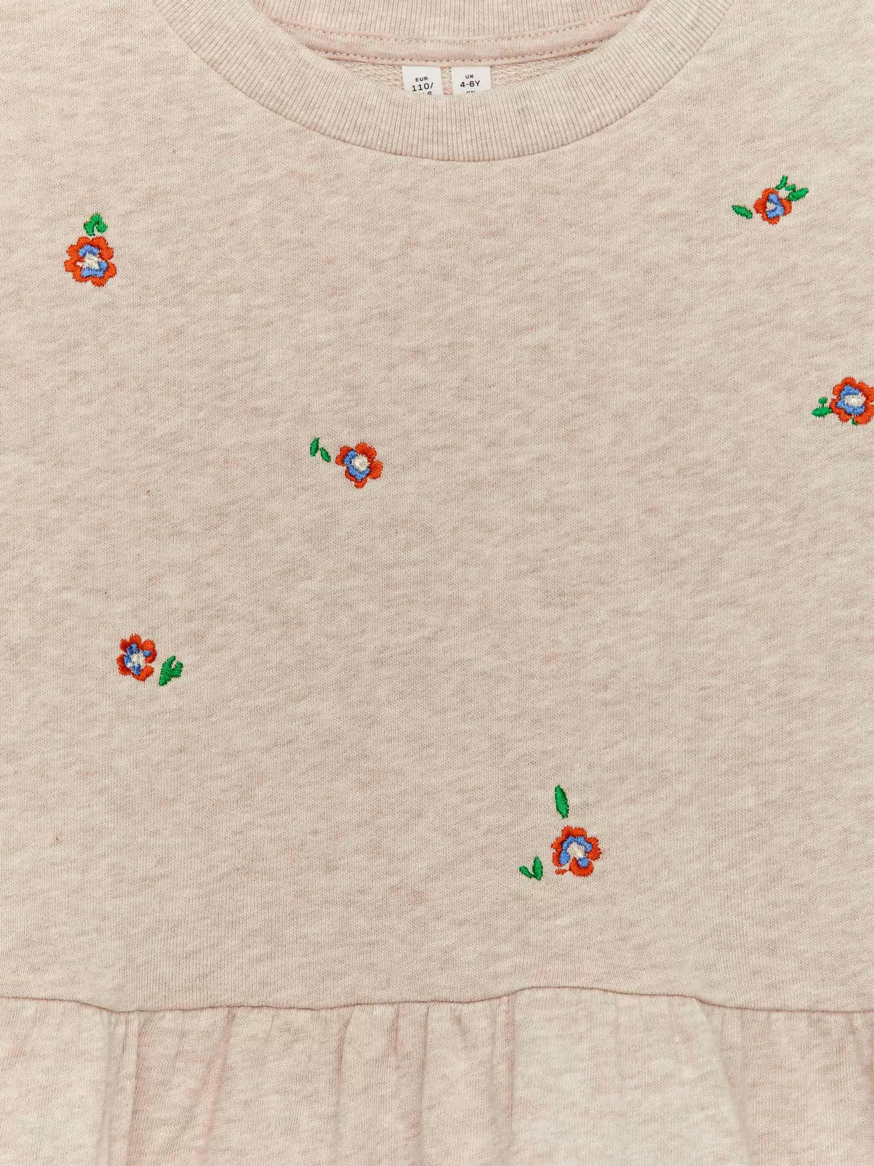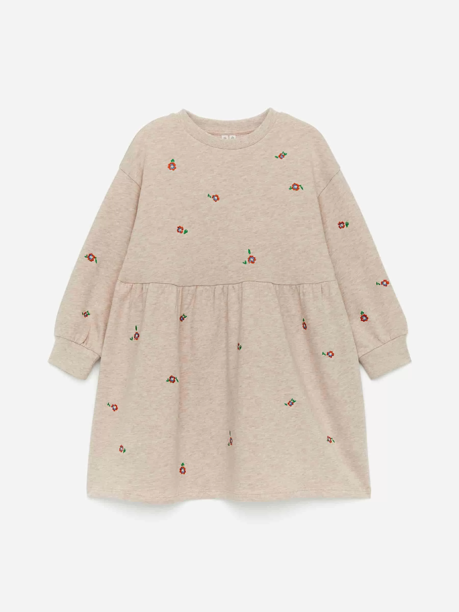 Oversized sweatshirt dress in cotton terry with embroidered cats. Styled with dropped shoulders and gatherings at waist. Ribbed trims create definition at the cuffs and hem.