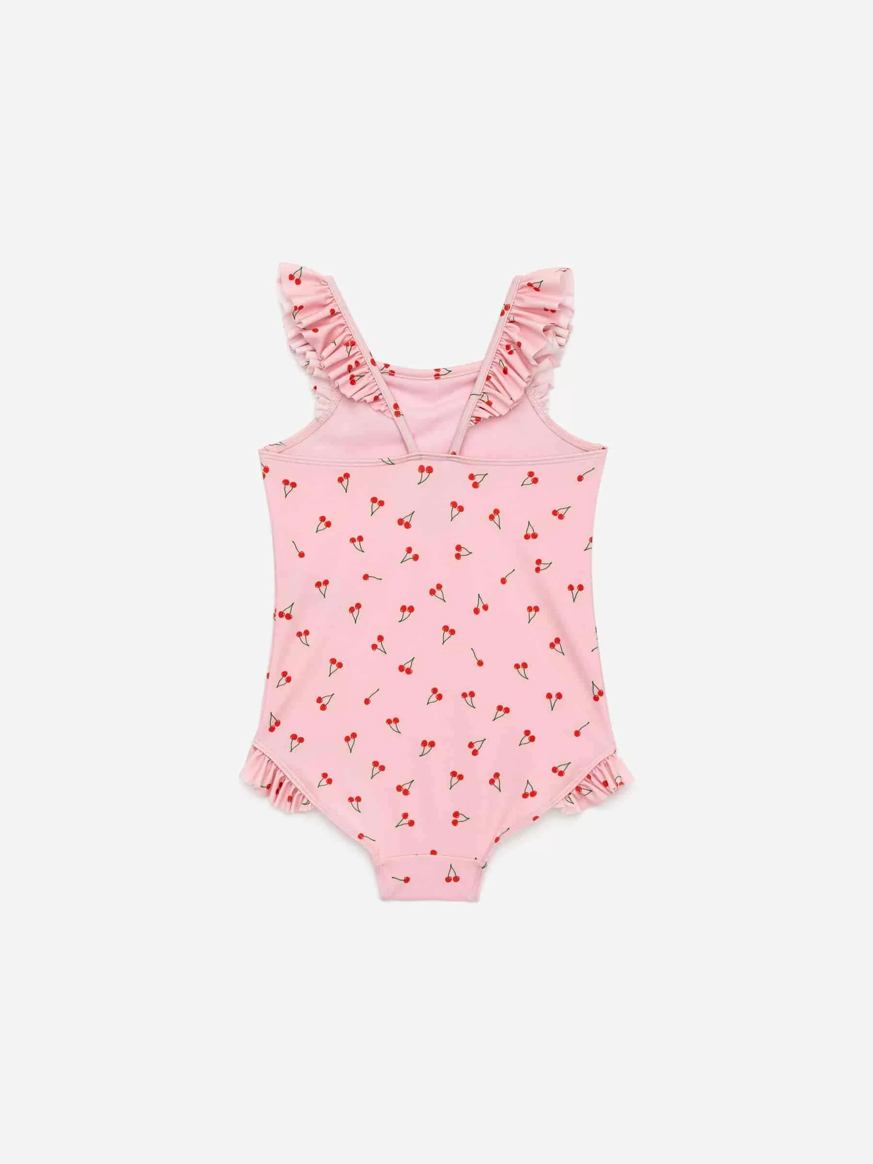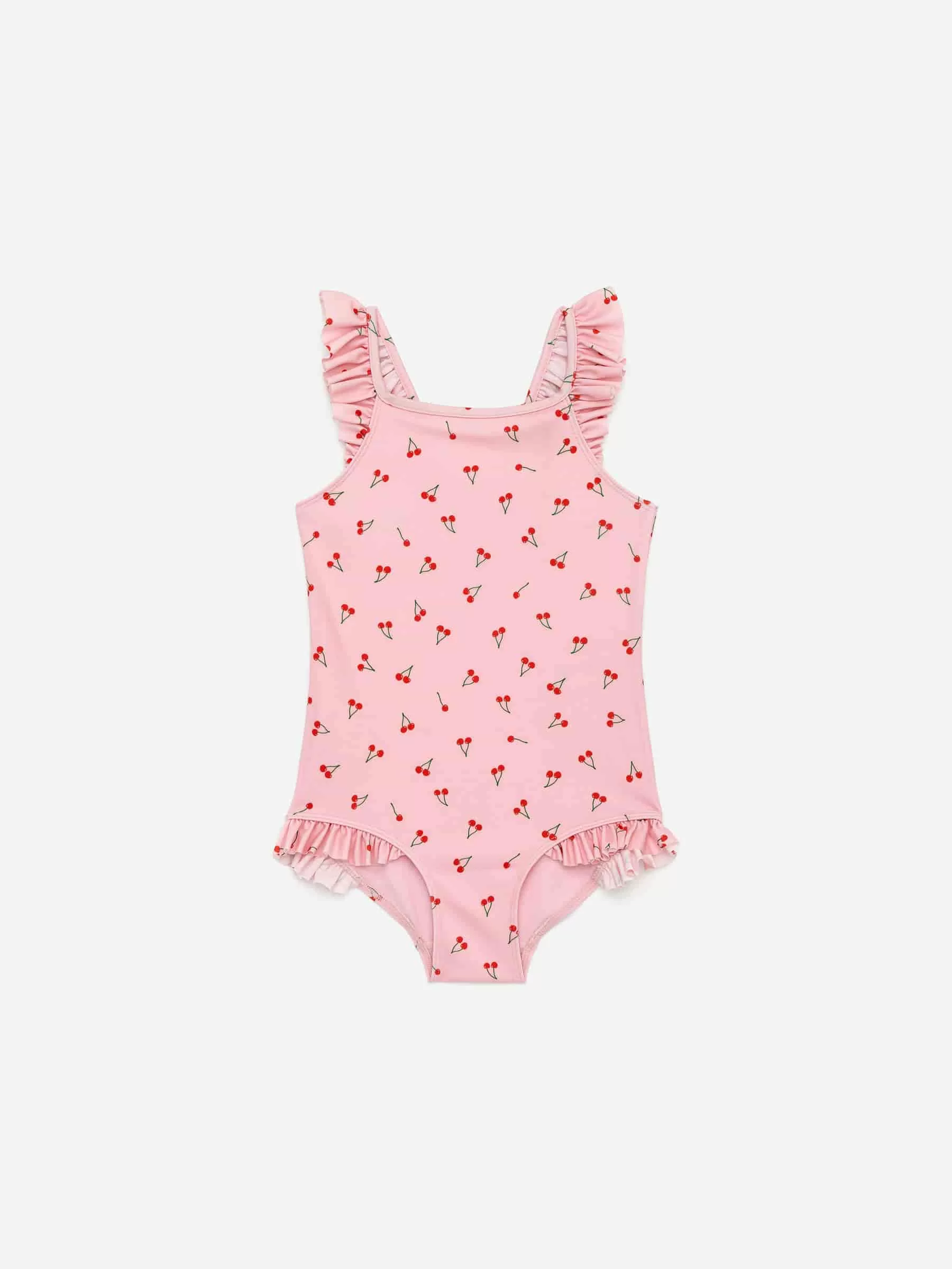 Swimsuit in yarn-dyed jersey fabric with frill details at the shoulders and leg openings. Regular fit.
