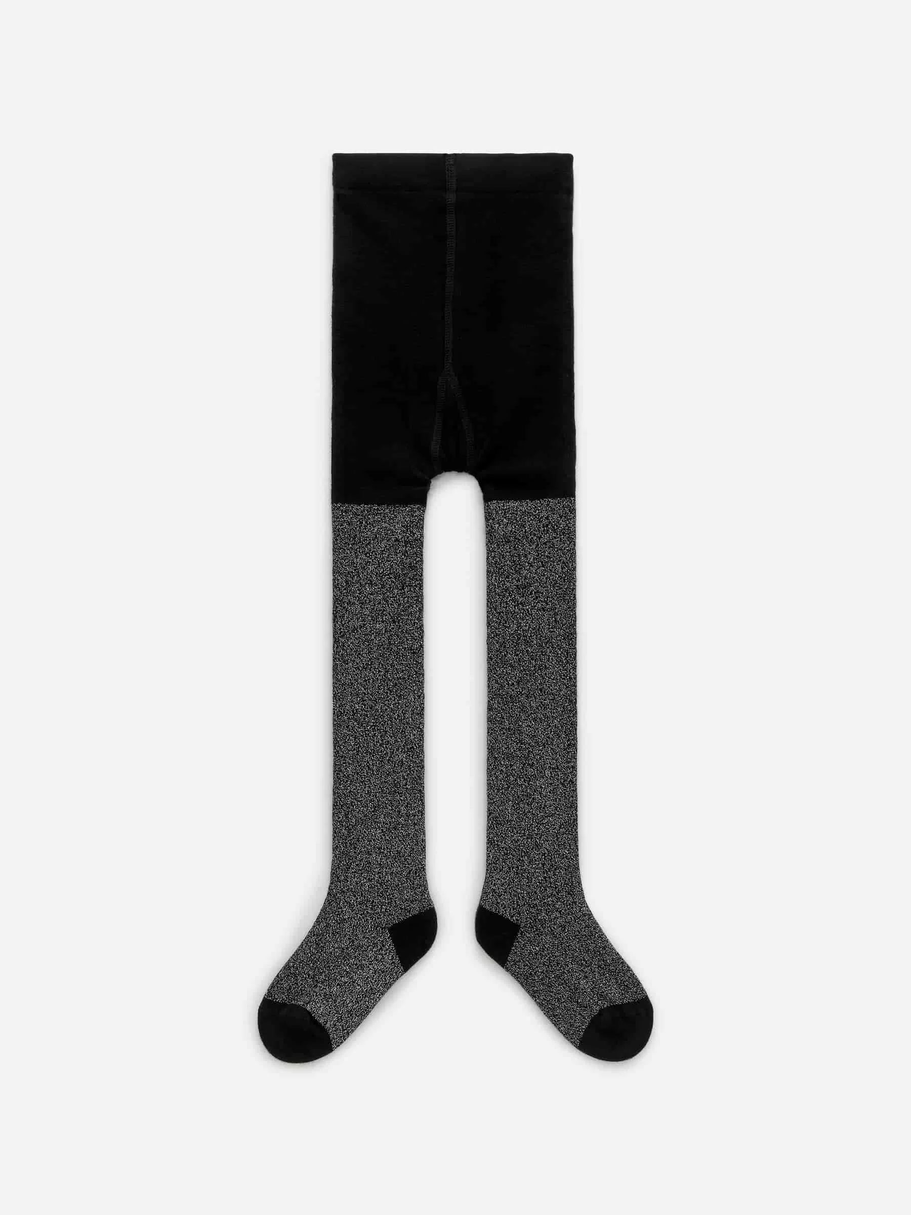 Knitted tights made from a cotton blend with a metallic thread for a glitter effect. Featuring a regular fit with mid rise and reinforced toe and heel.