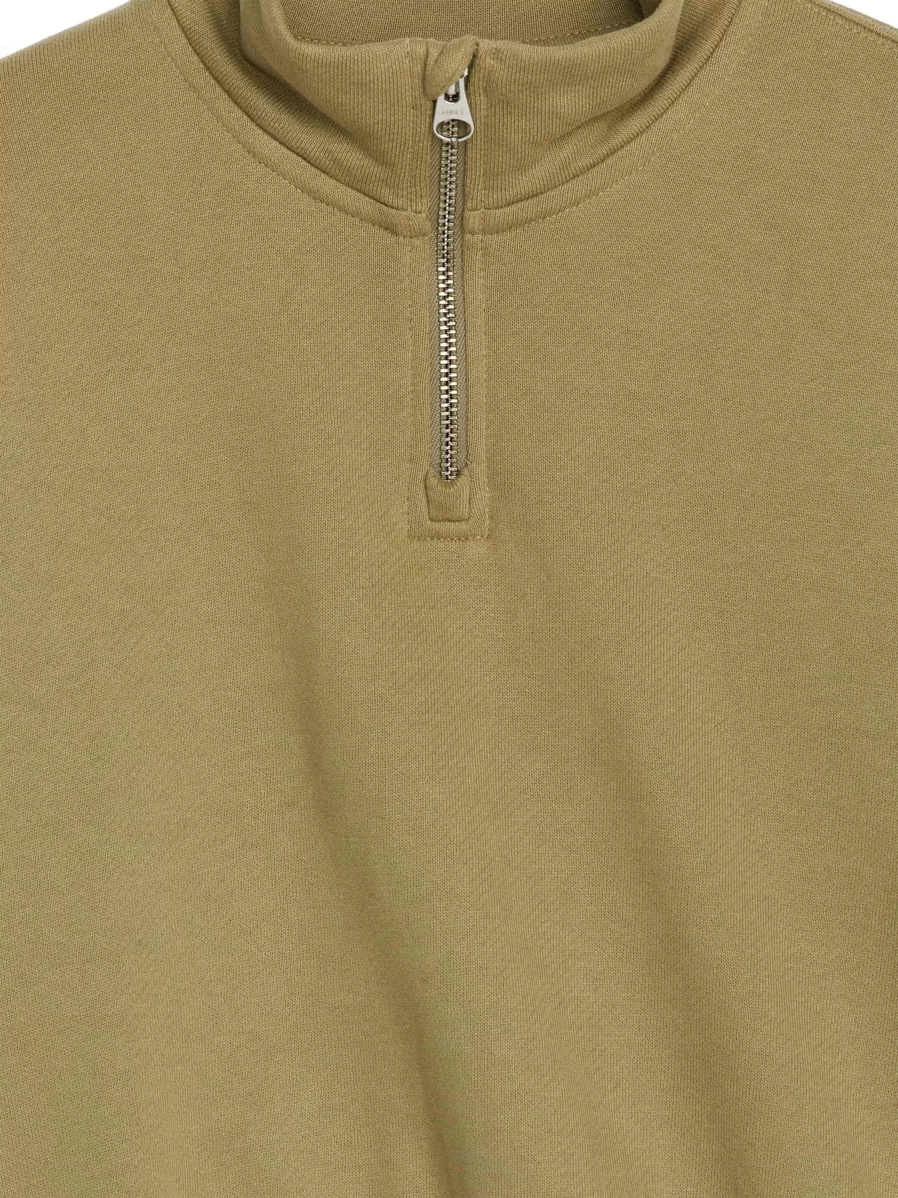 Half-zip sweatshirt made in a st French terry quality with a brushed surface for a peach-like feel. Dropped shoulders for a more relaxed fit. Ribbed cuffs at cuffs and bottom hem.