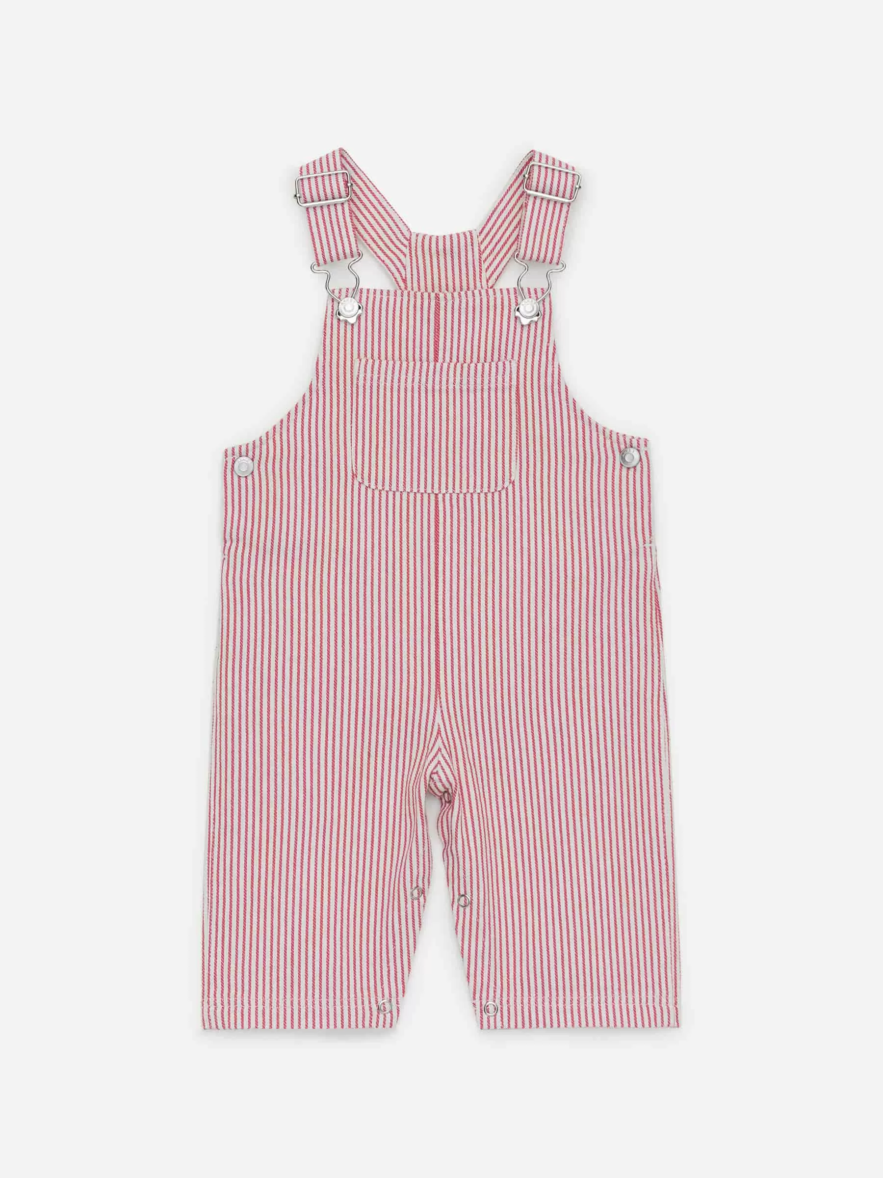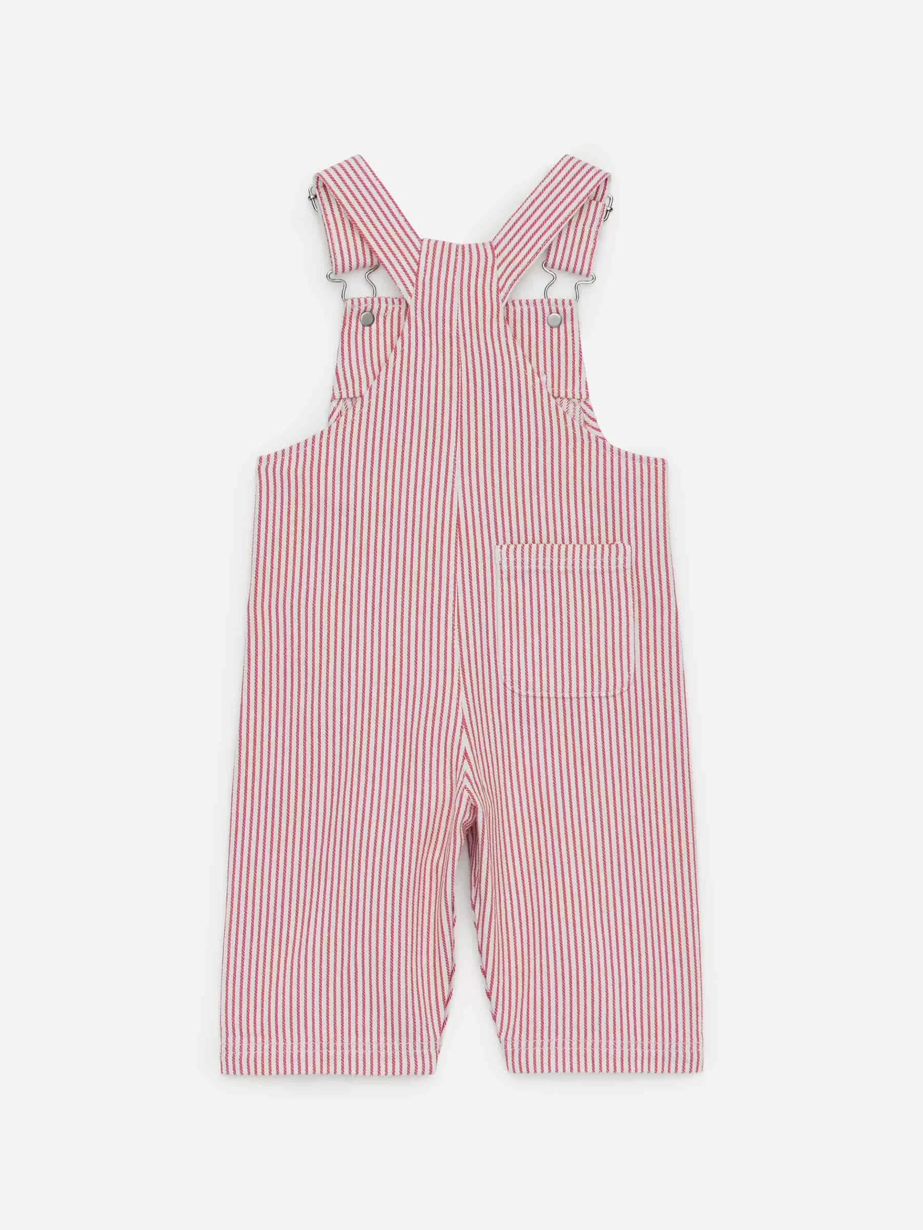 Dungarees with a hickory striped pattern crafted from a soft cotton weave. Styled with a front chest pocket and a single back pocket. Snap buttons at crotch for all sizes except 86-92. Regular fit.