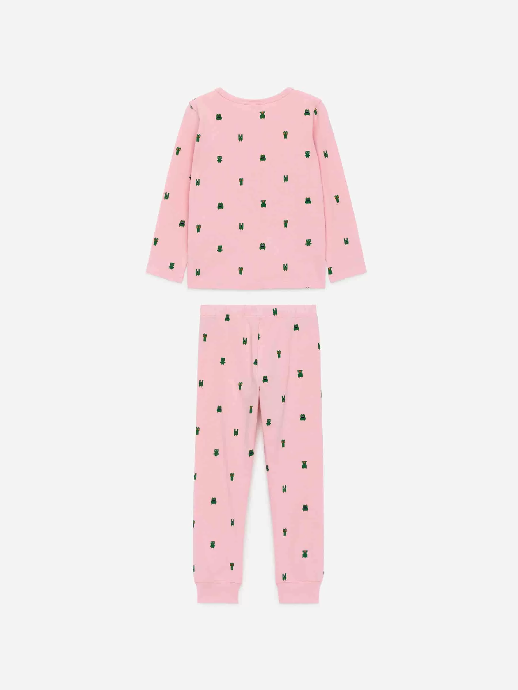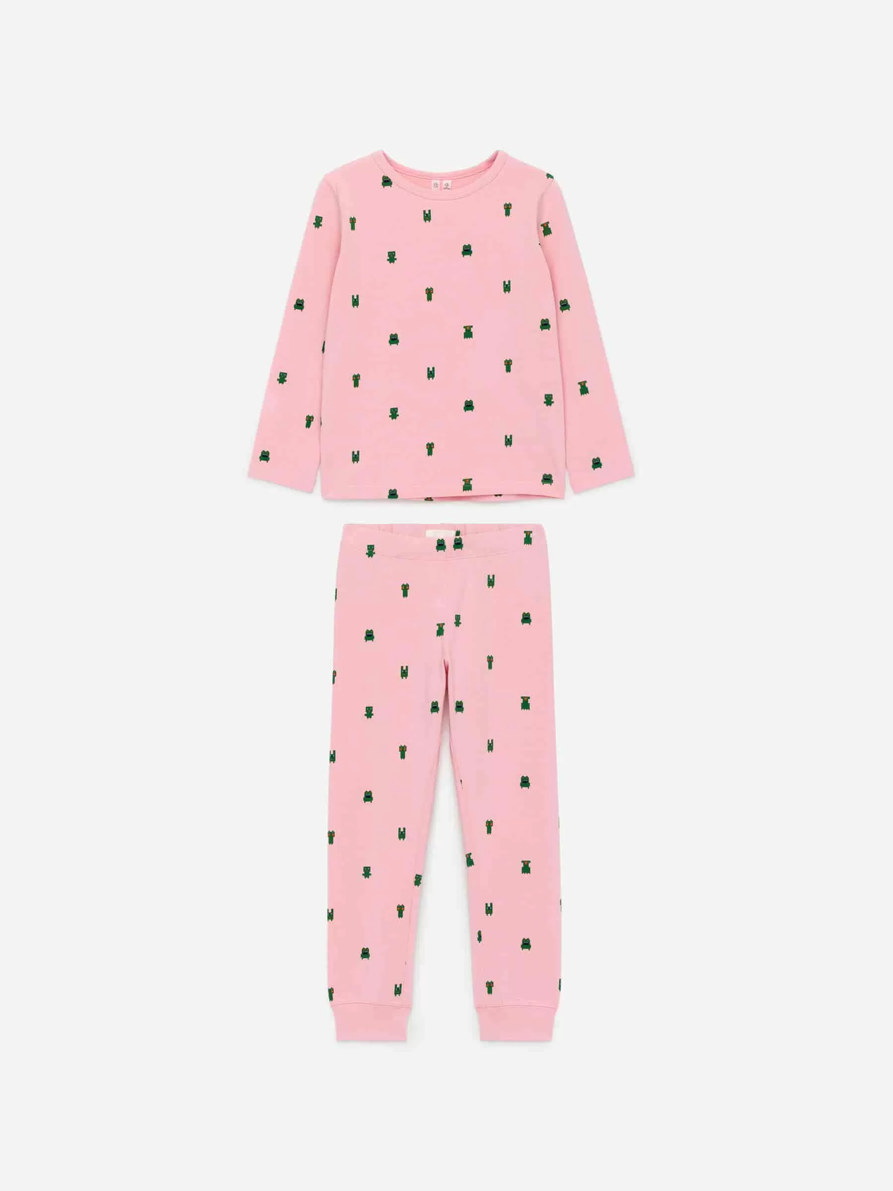 Sewn from a soft single jersey fabric, this two-piece pyjama is made of cotton. A crew-neck pyjama top with long sleeves, and trousers with elasticated waist. Ribbed cuffs at both sleeves and legs.