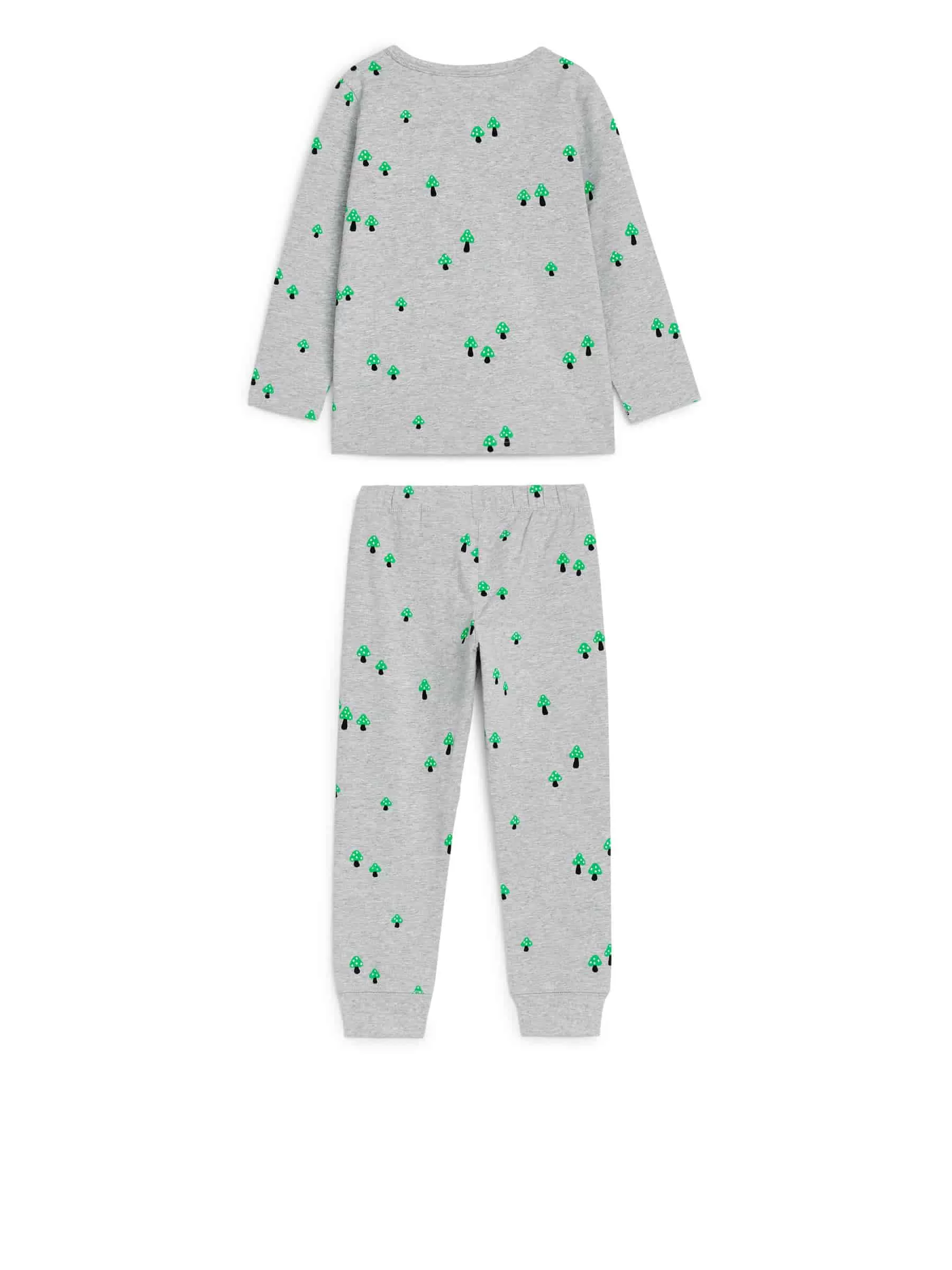 Sewn from a soft single jersey fabric, this two-piece pyjama is made of cotton. A crew-neck pyjama top with long sleeves, and trousers with elasticated waist. Ribbed cuffs at both sleeves and legs.