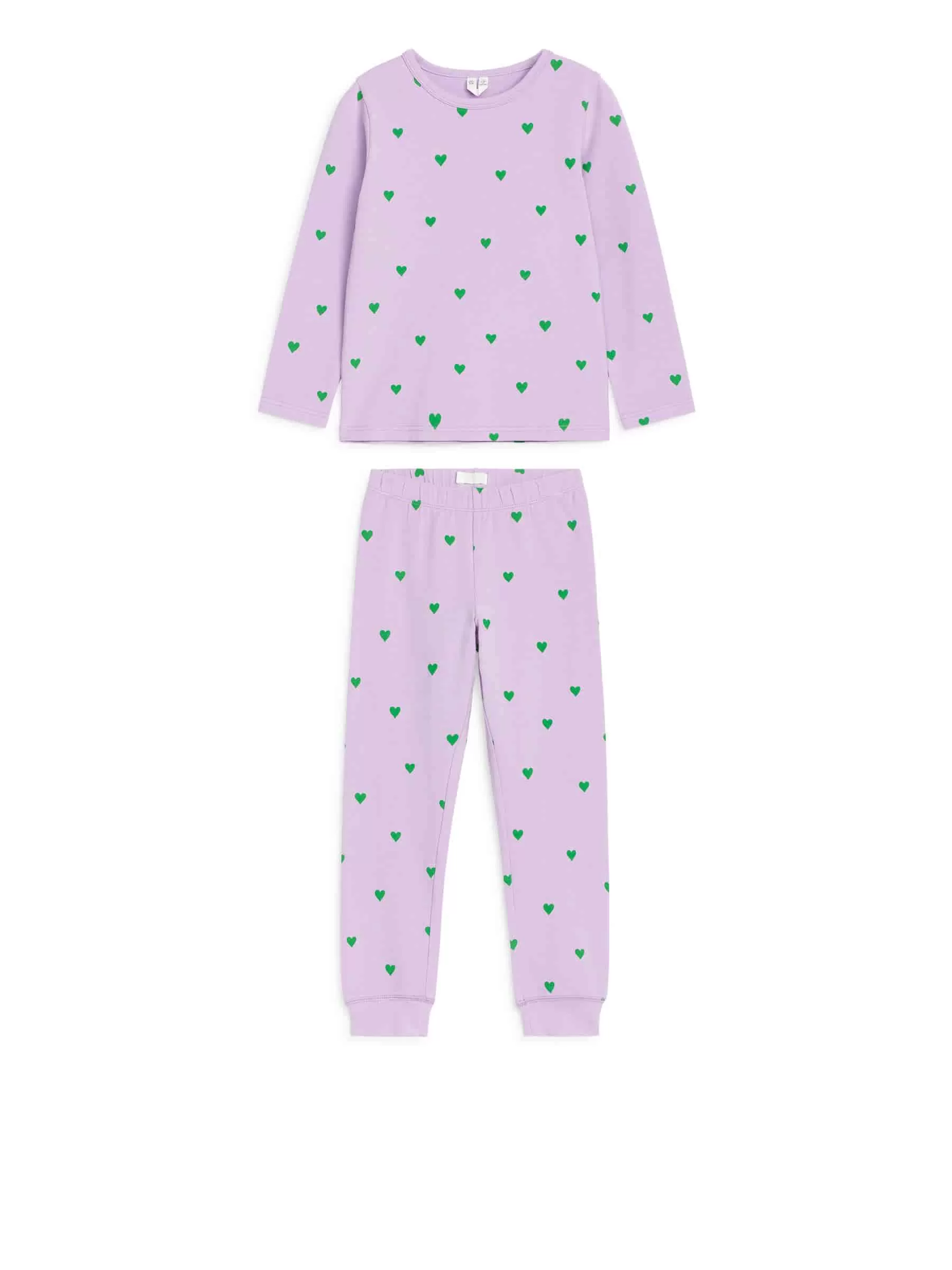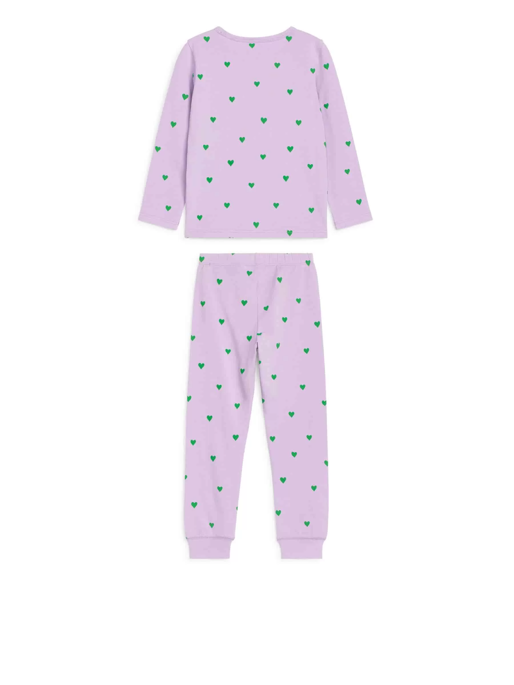 Sewn from a soft single jersey fabric, this two-piece pyjama is made of cotton. A crew-neck pyjama top with long sleeves, and trousers with elasticated waist. Ribbed cuffs at both sleeves and legs.