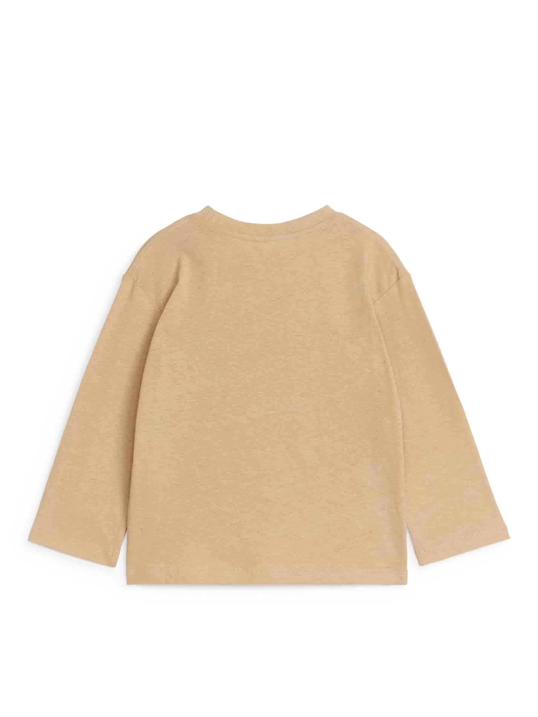 Long-sleeve T-shirt made from a soft cotton linen blend. Cut for a relaxed fit with slightly dropped shoulders. Detailed with a patch pocket at chest.