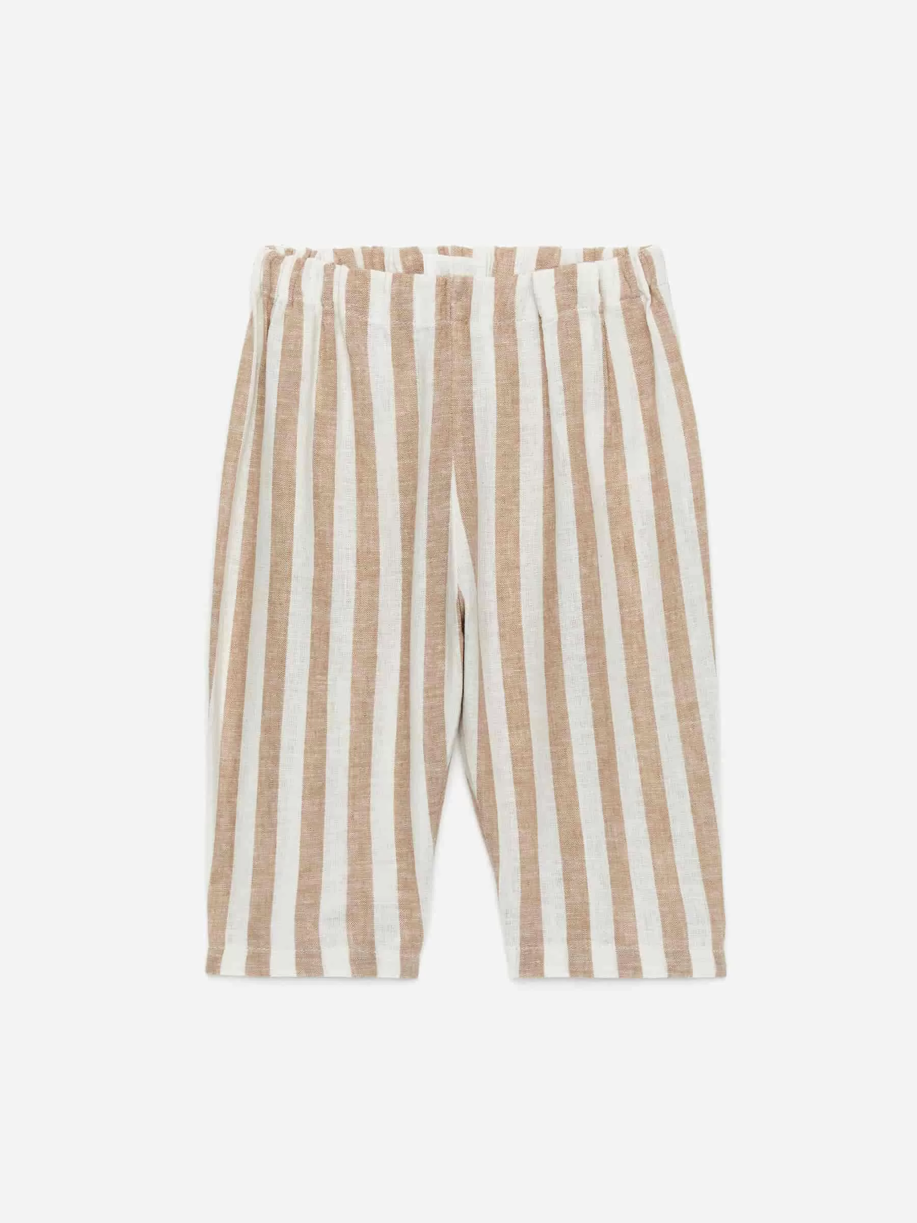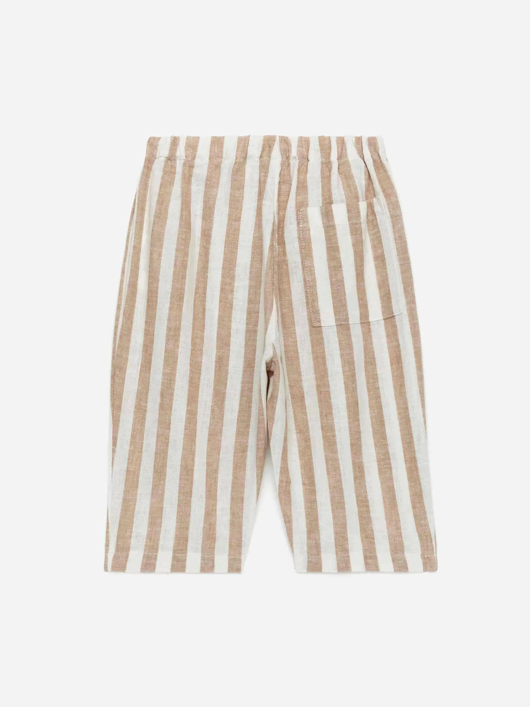 Loose-fitted trousers crafted from a soft blend of linen and cotton. Styled with an adjustable waistband and a single back pocket.
