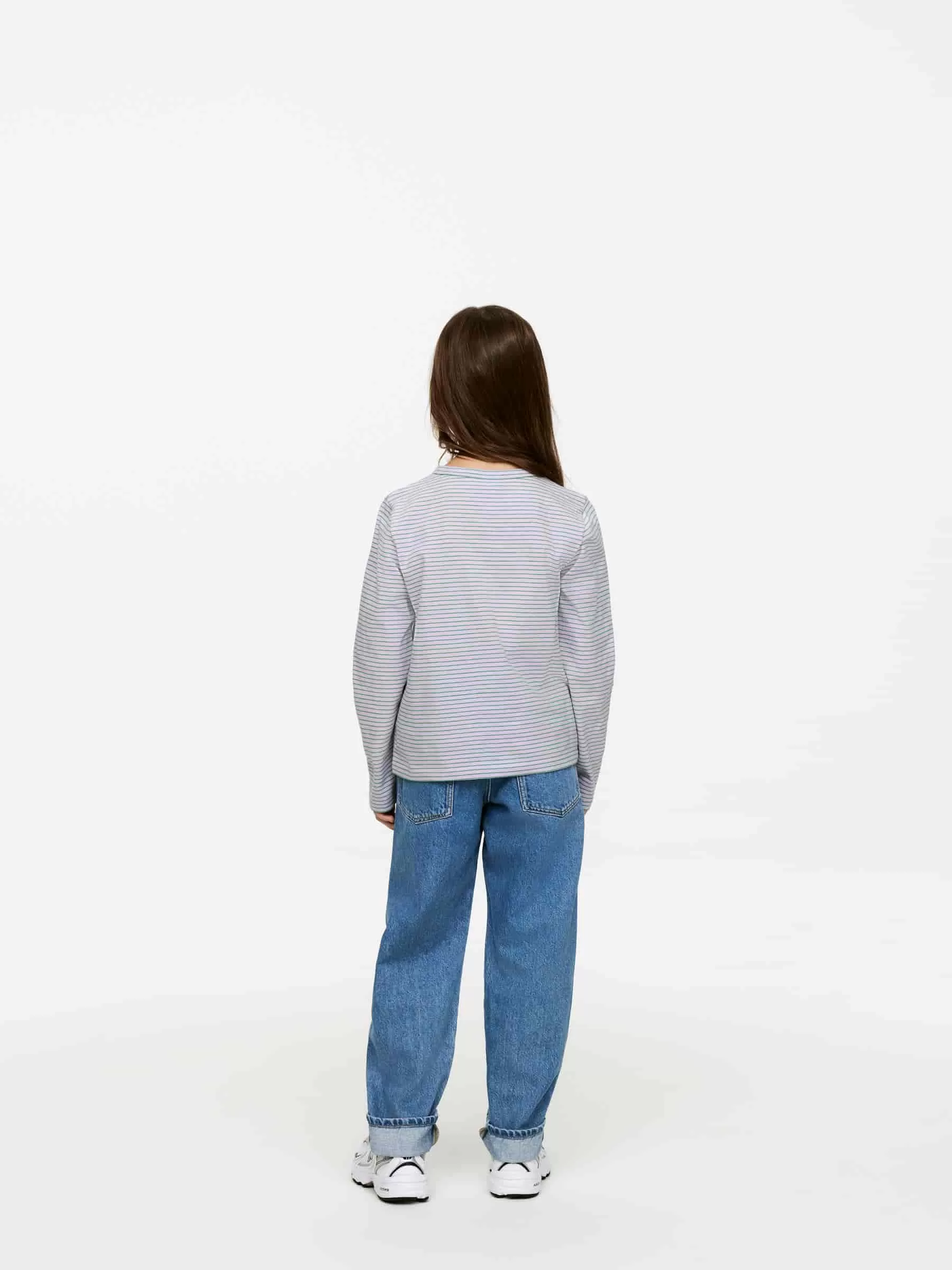 Long-sleeved t-shirt crafted from a single jersey fabric made of a soft cotton yarn. Binding at neck.