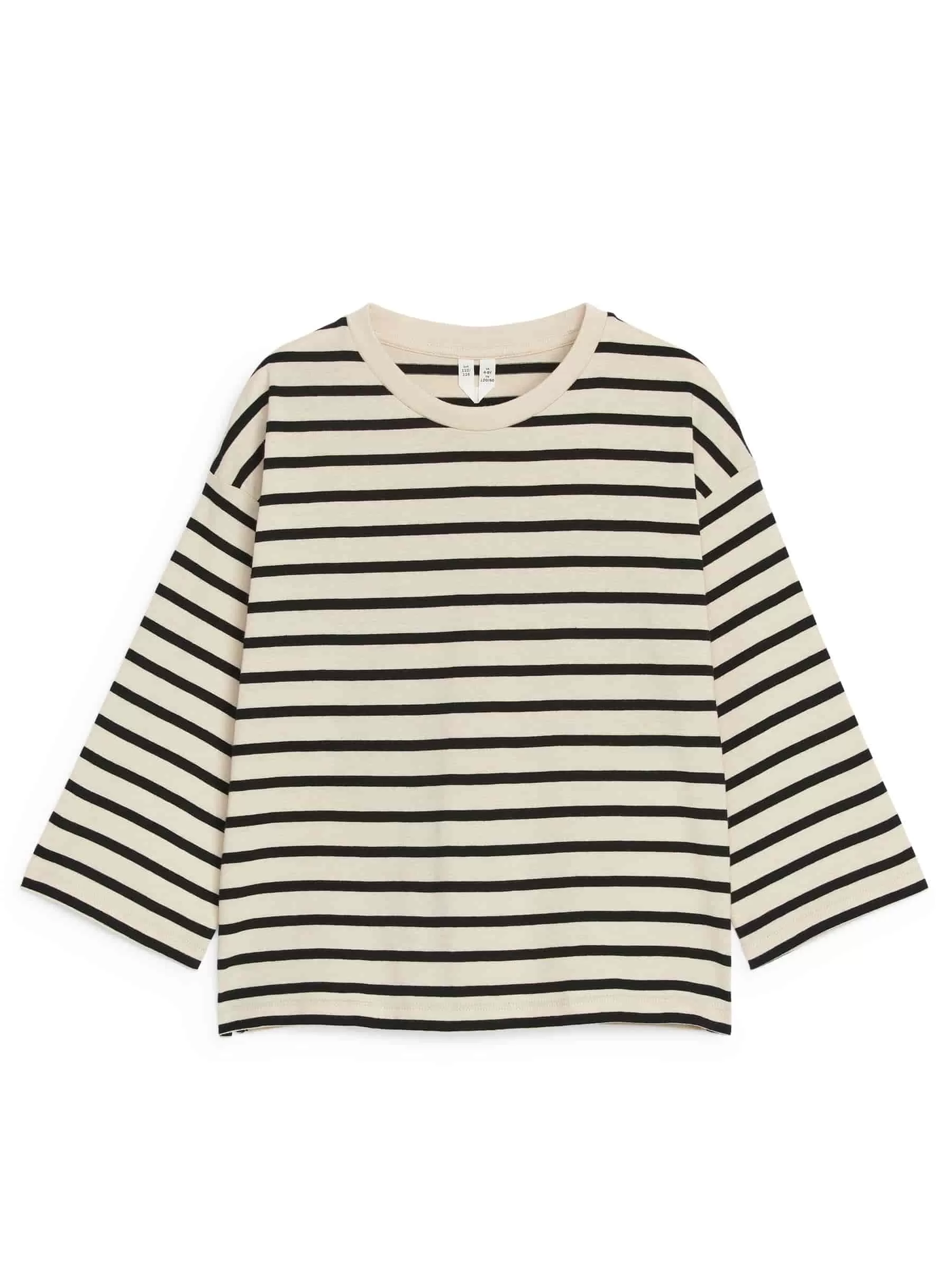Long-sleeved T-shirt with dropped shoulders made in a cotton jersey. Regular fit.