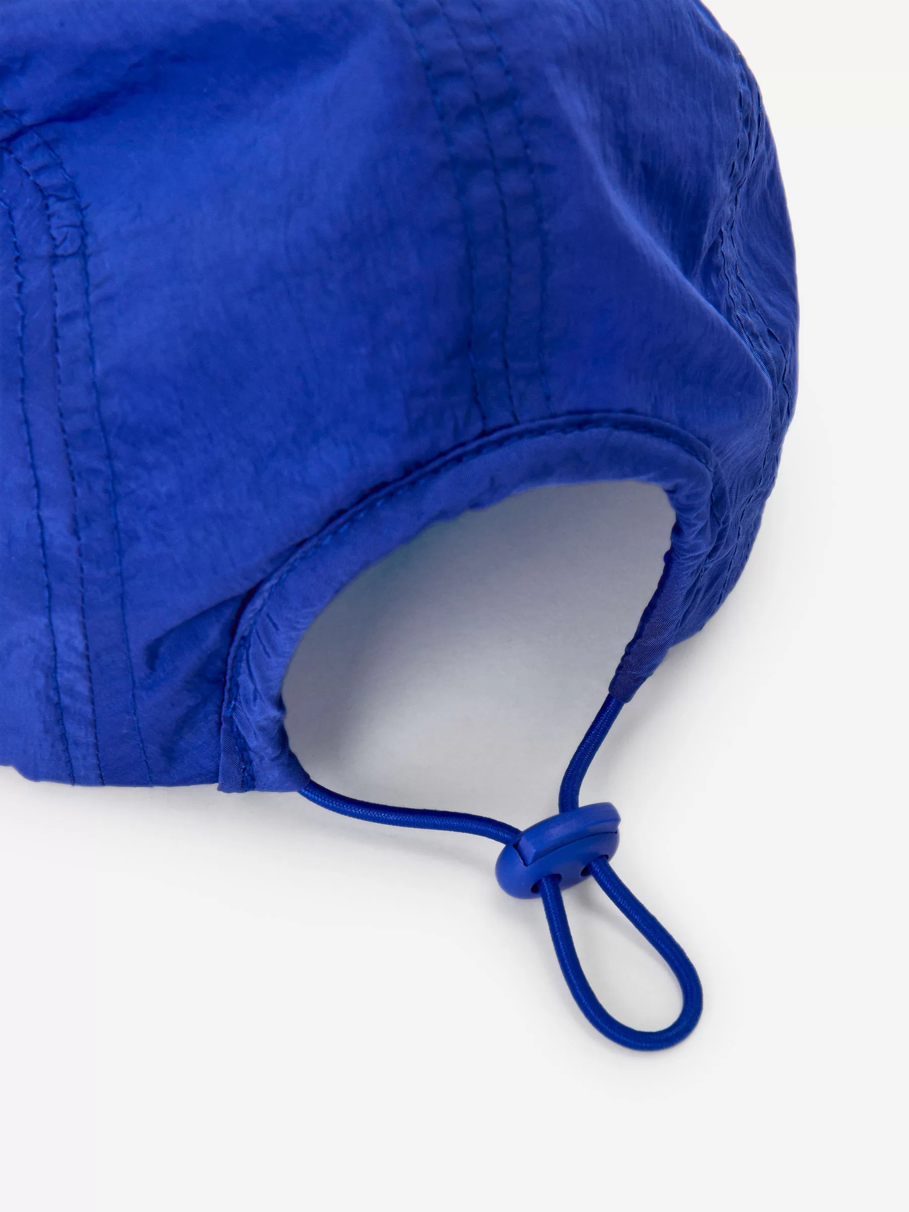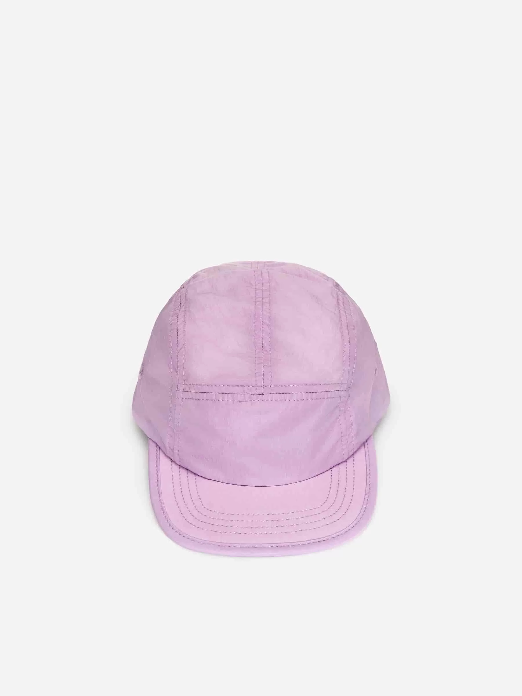 Nylon cap with eyelet embroidery and an adjustable tab at the back.