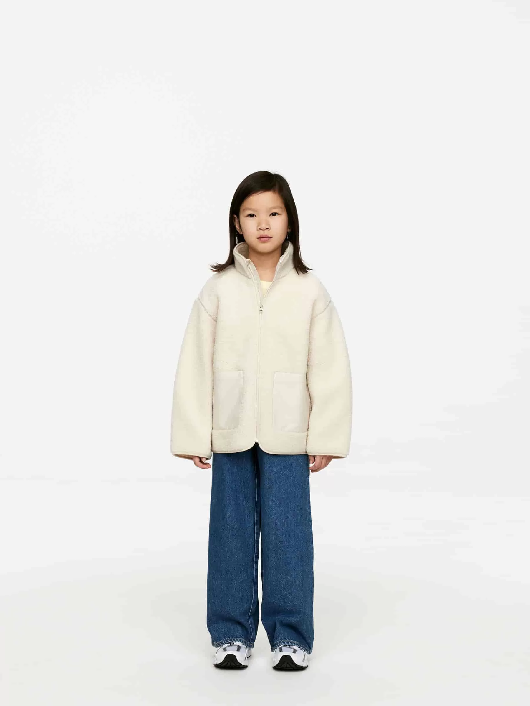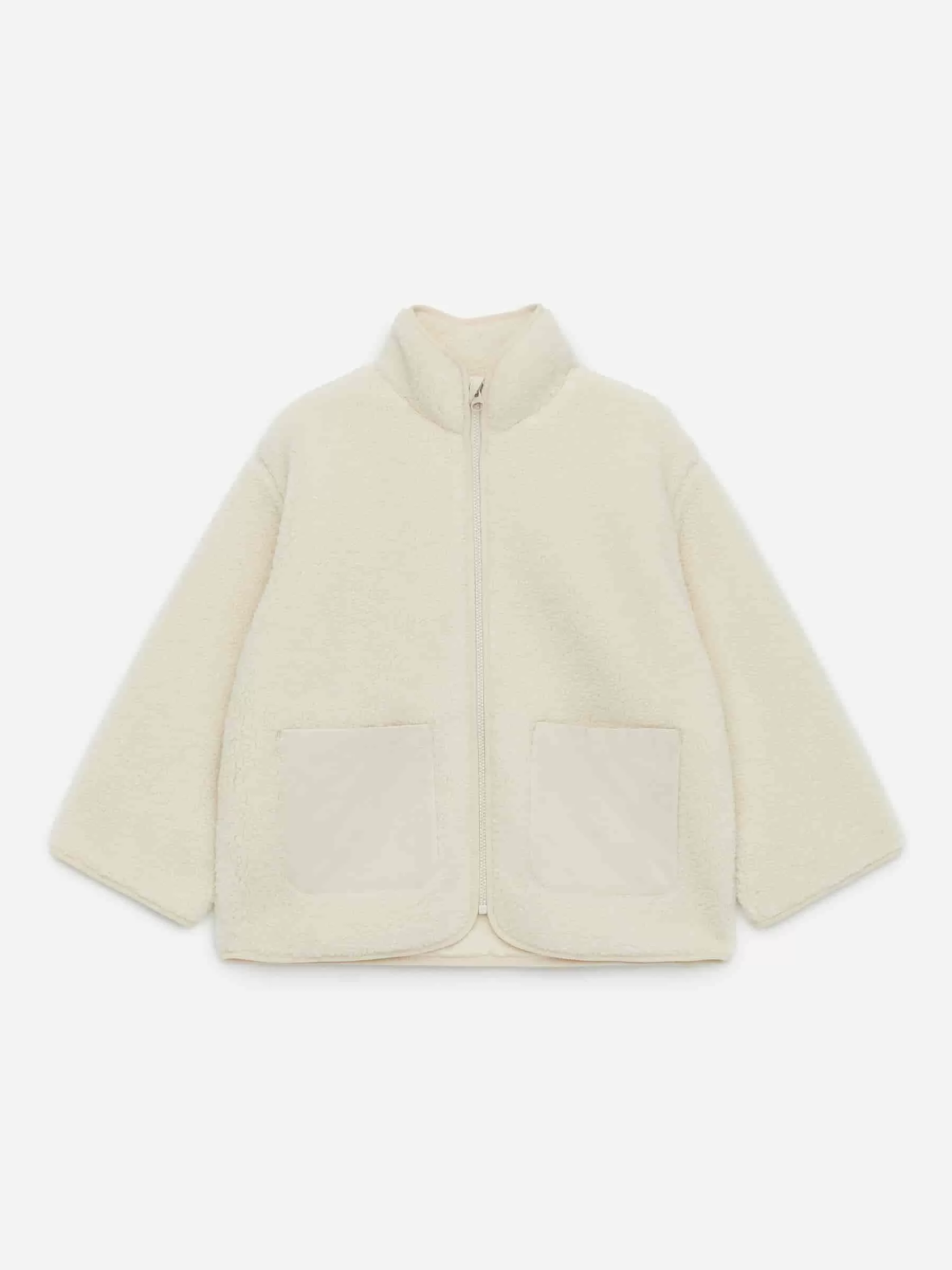 Pile jacket with dropped shoulders, a comfortable standing collar and nylon patch pockets. Regular fit.