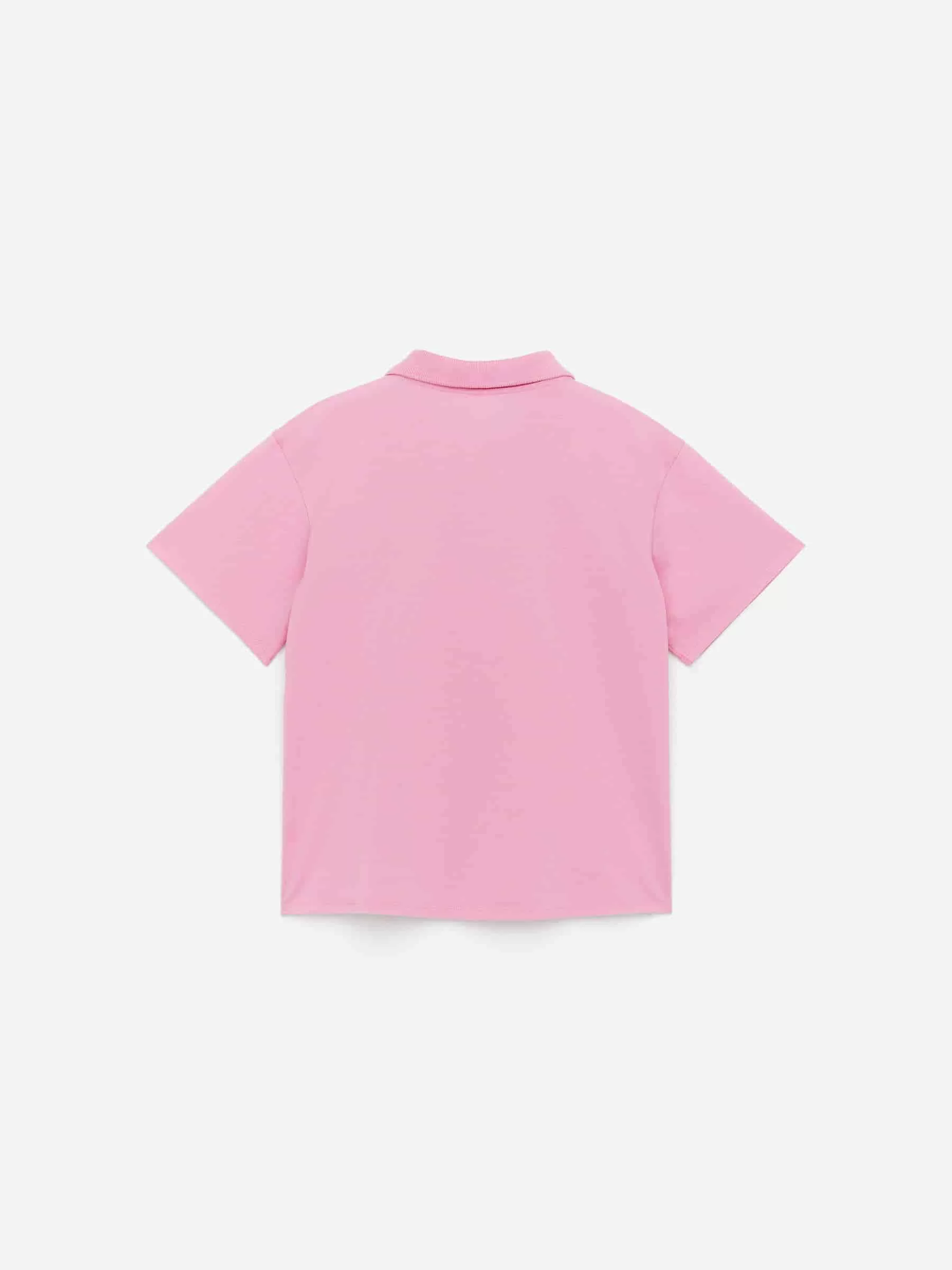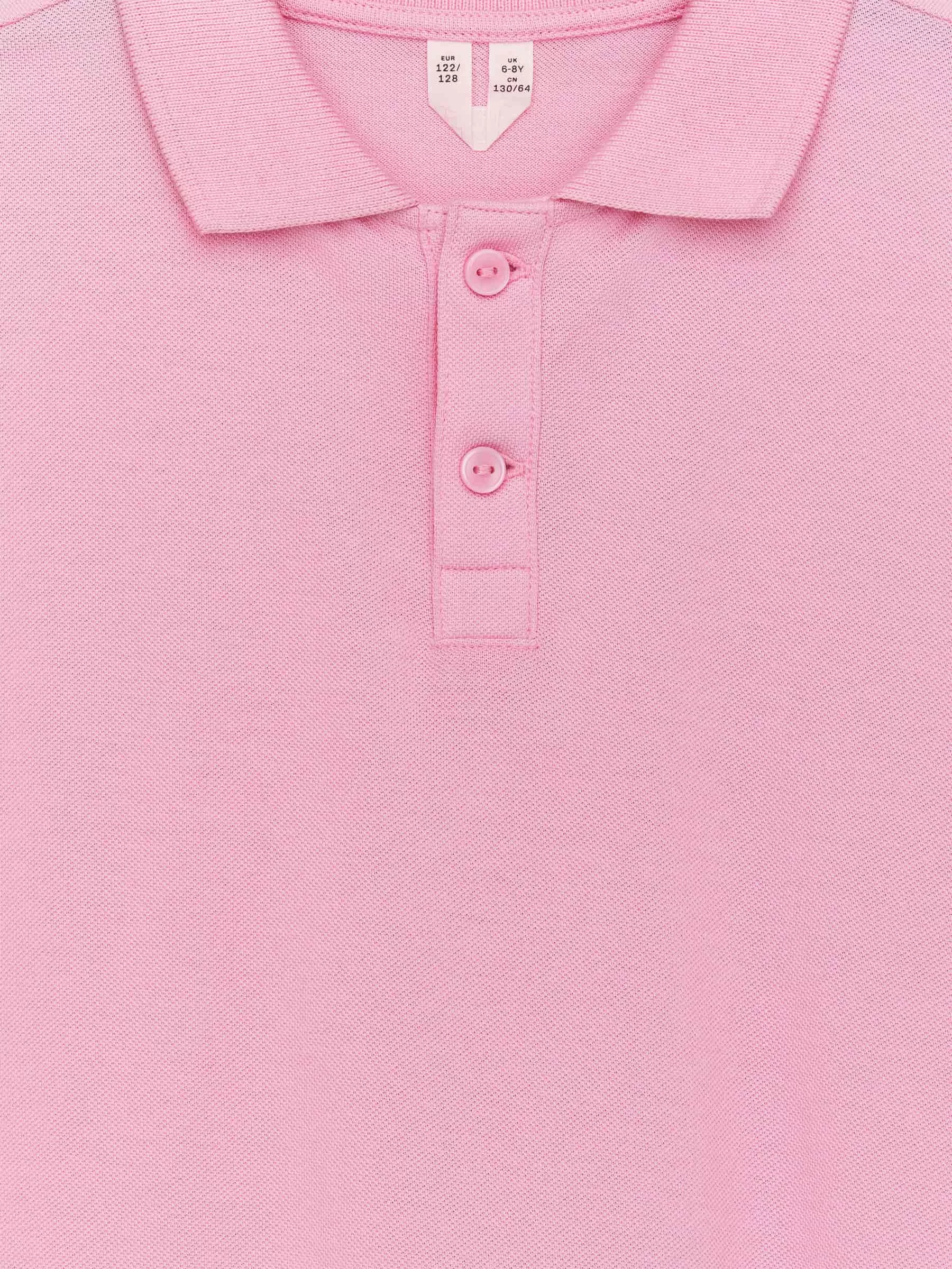 Short-sleeve polo shirt with slightly dropped shoulders cut from a piqué-knitted cotton jersey. Detailed with a ribbed collar, side slits and a buttoned placket.