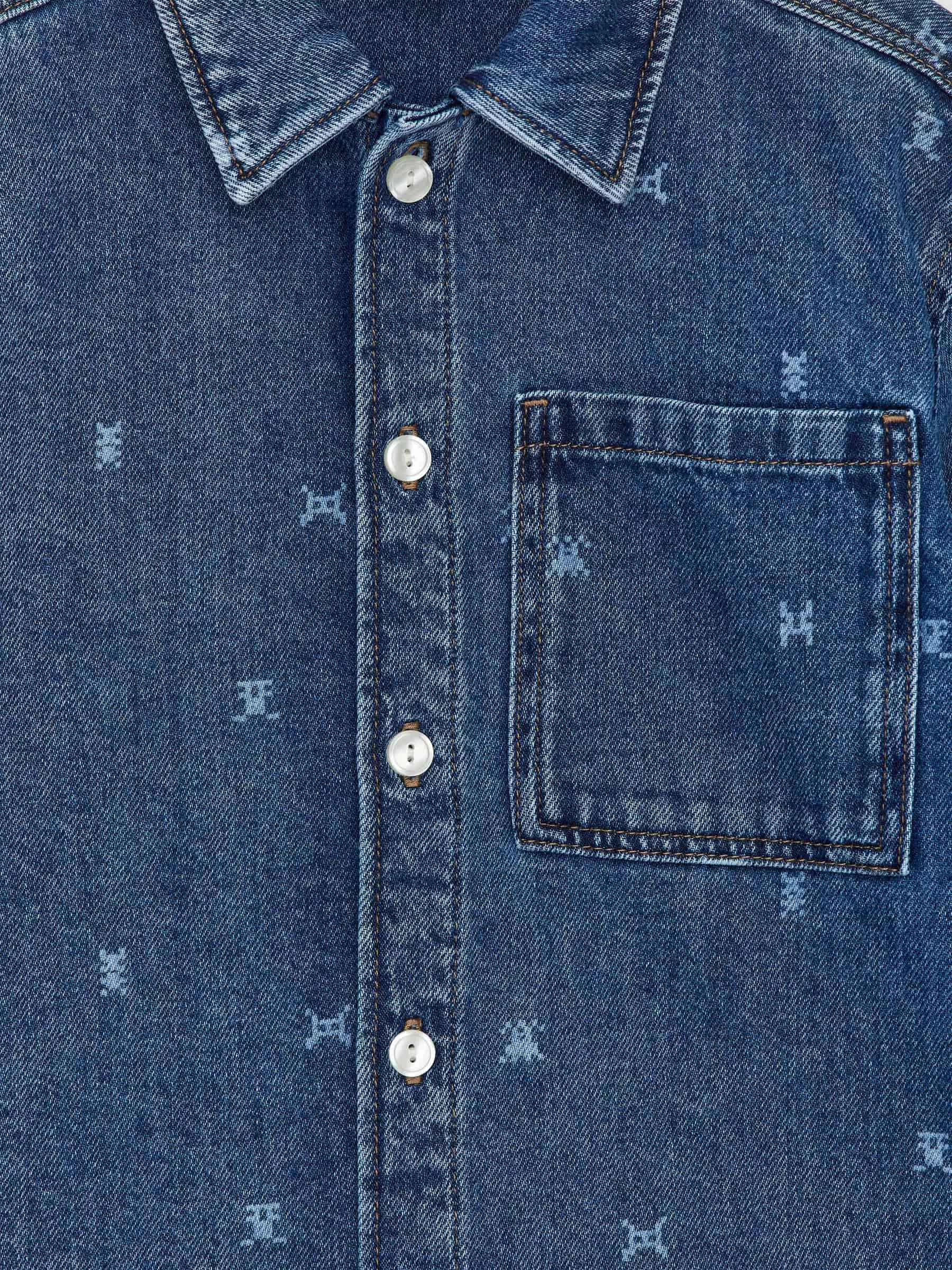 Denim shirt with an all over print. Styled with a single chest pocket and buttoned cuffs. Regular fit.