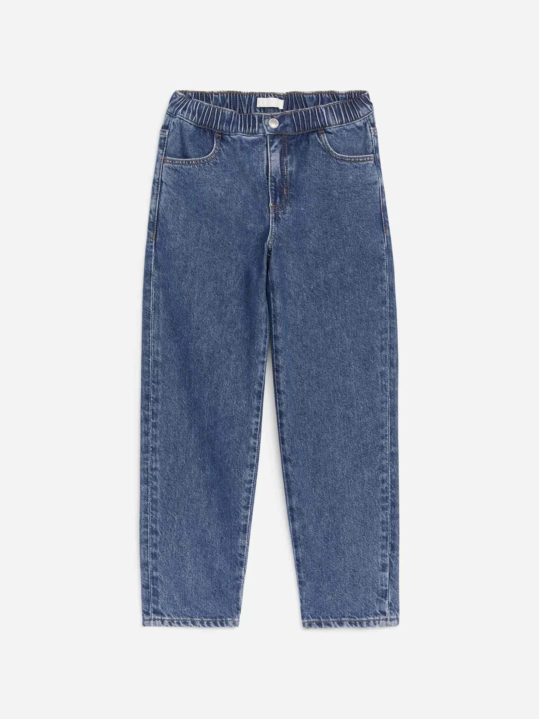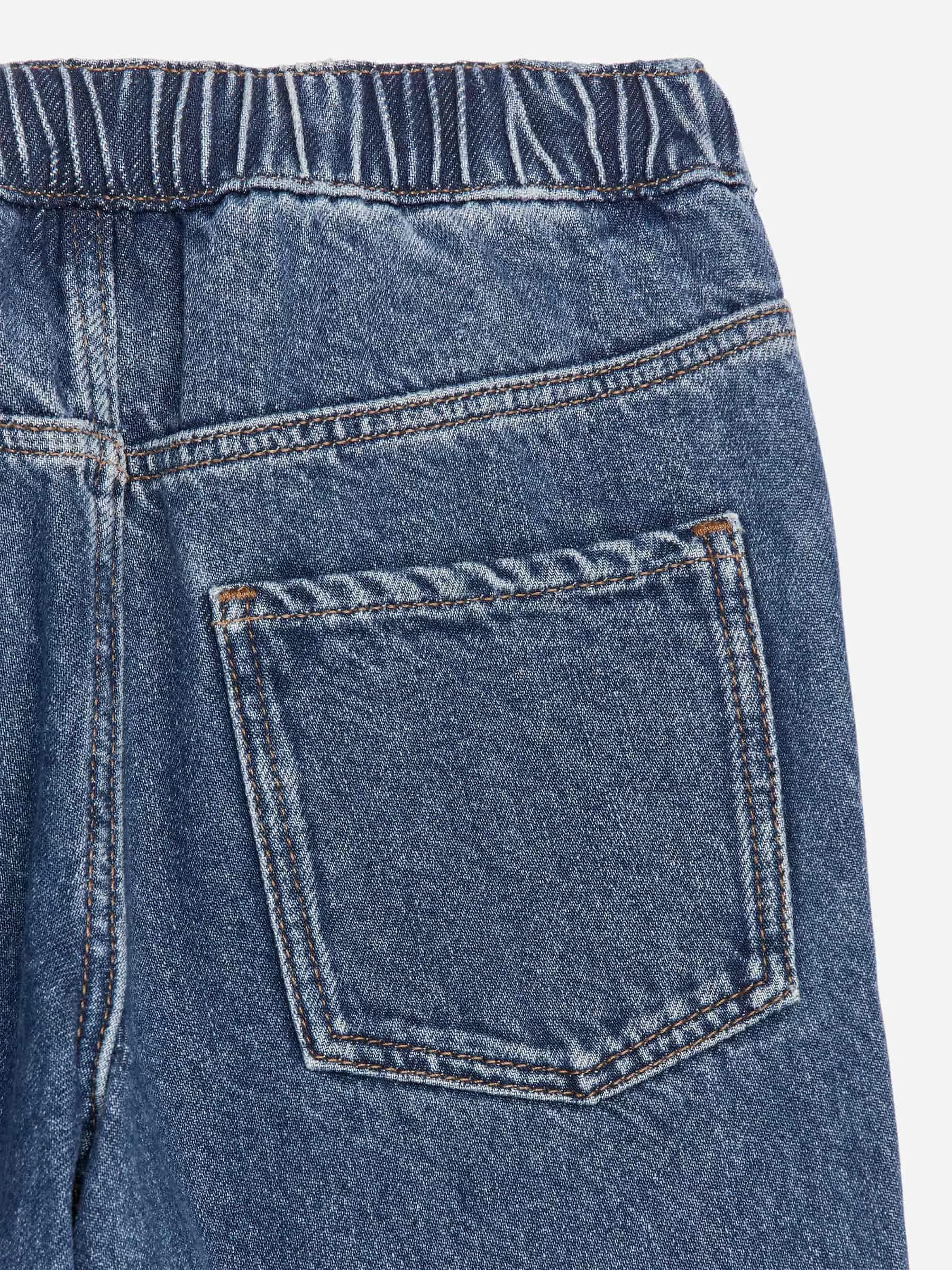 Pull-on jeans crafted from a soft cotton blend. Featuring a wide fit with straight legs. Elasticated waistband, zip closure and pockets at front and back.