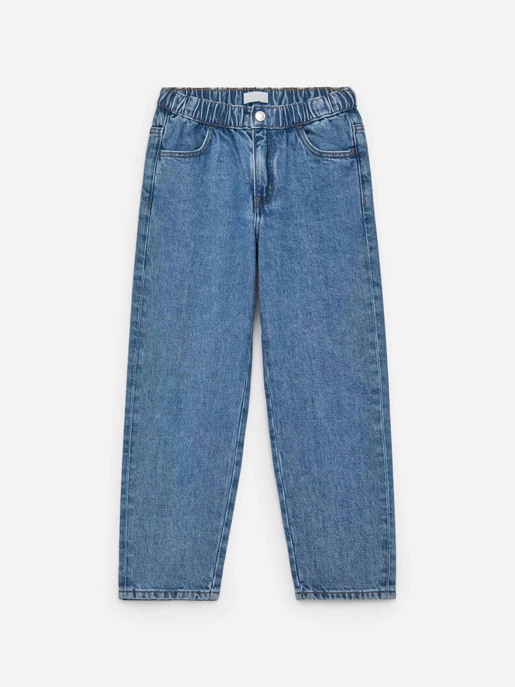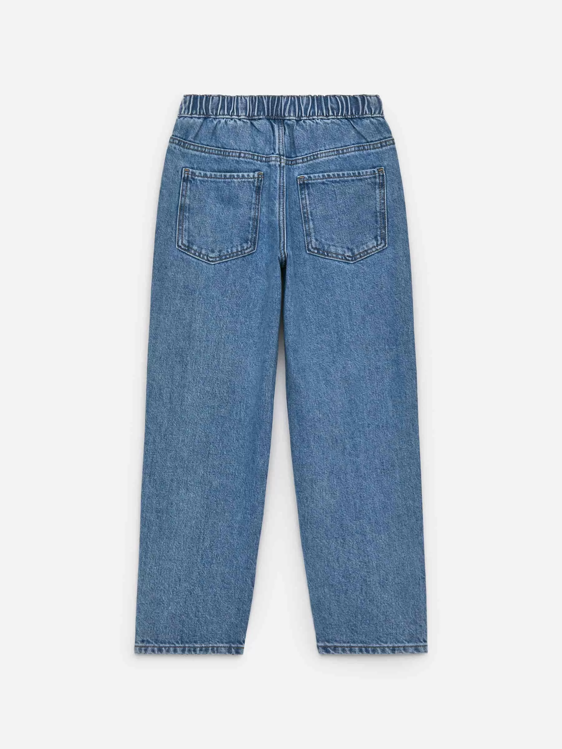 Pull-on jeans in a wide fit with straight legs. Elasticated waistband, zip closure and pockets at front and back.