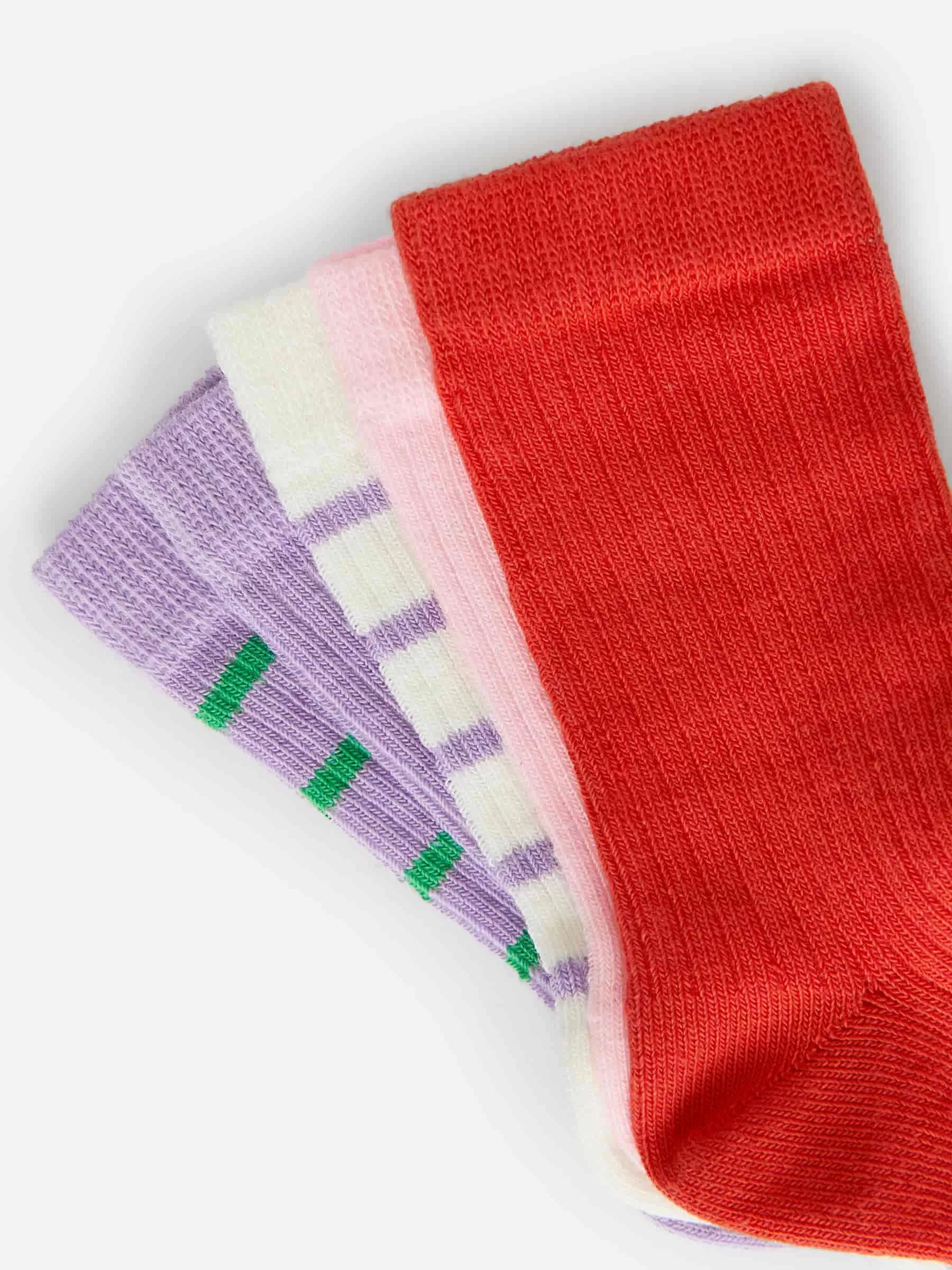 ARKE Children Rib Knit Baby Socks, 5 Pairs Lilac/Red