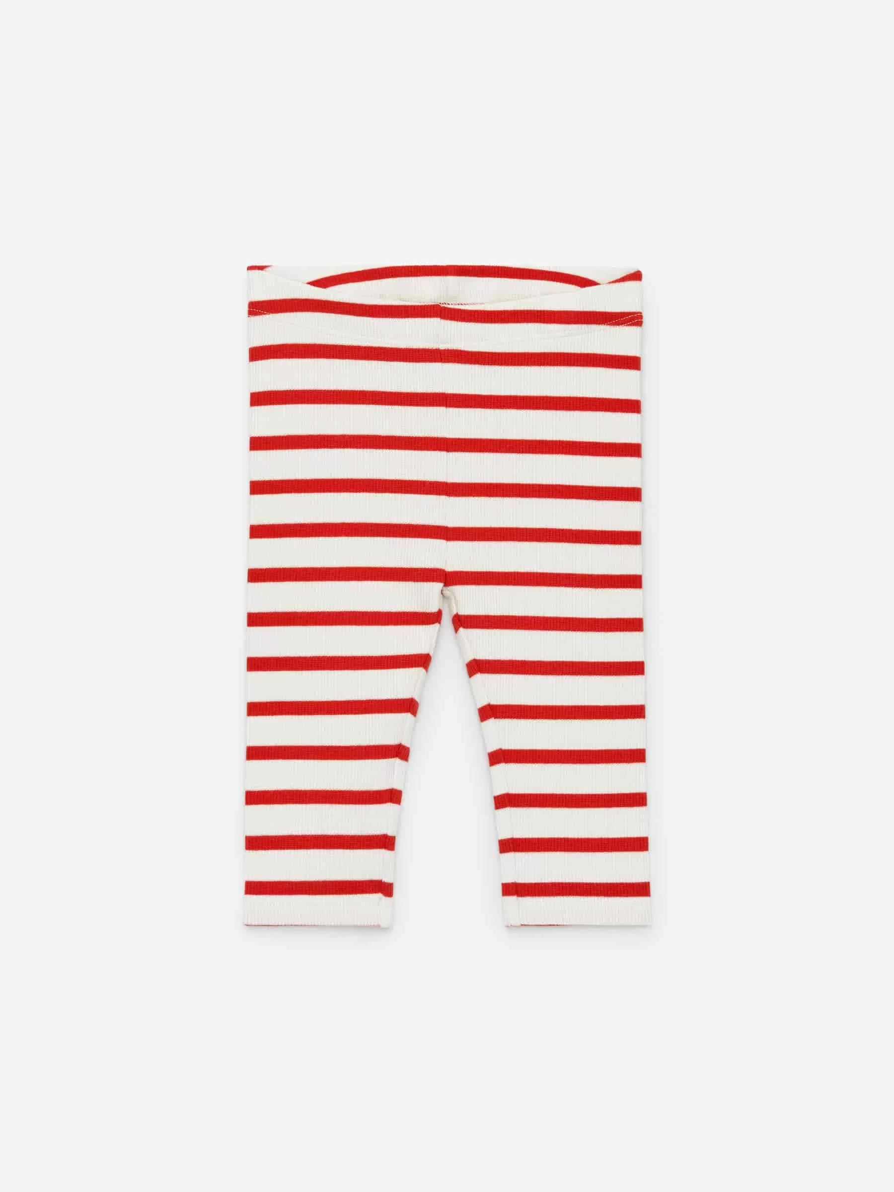 Rib-knitted leggings made from a soft cotton jersey fabric. Adjustable elastics at waist.