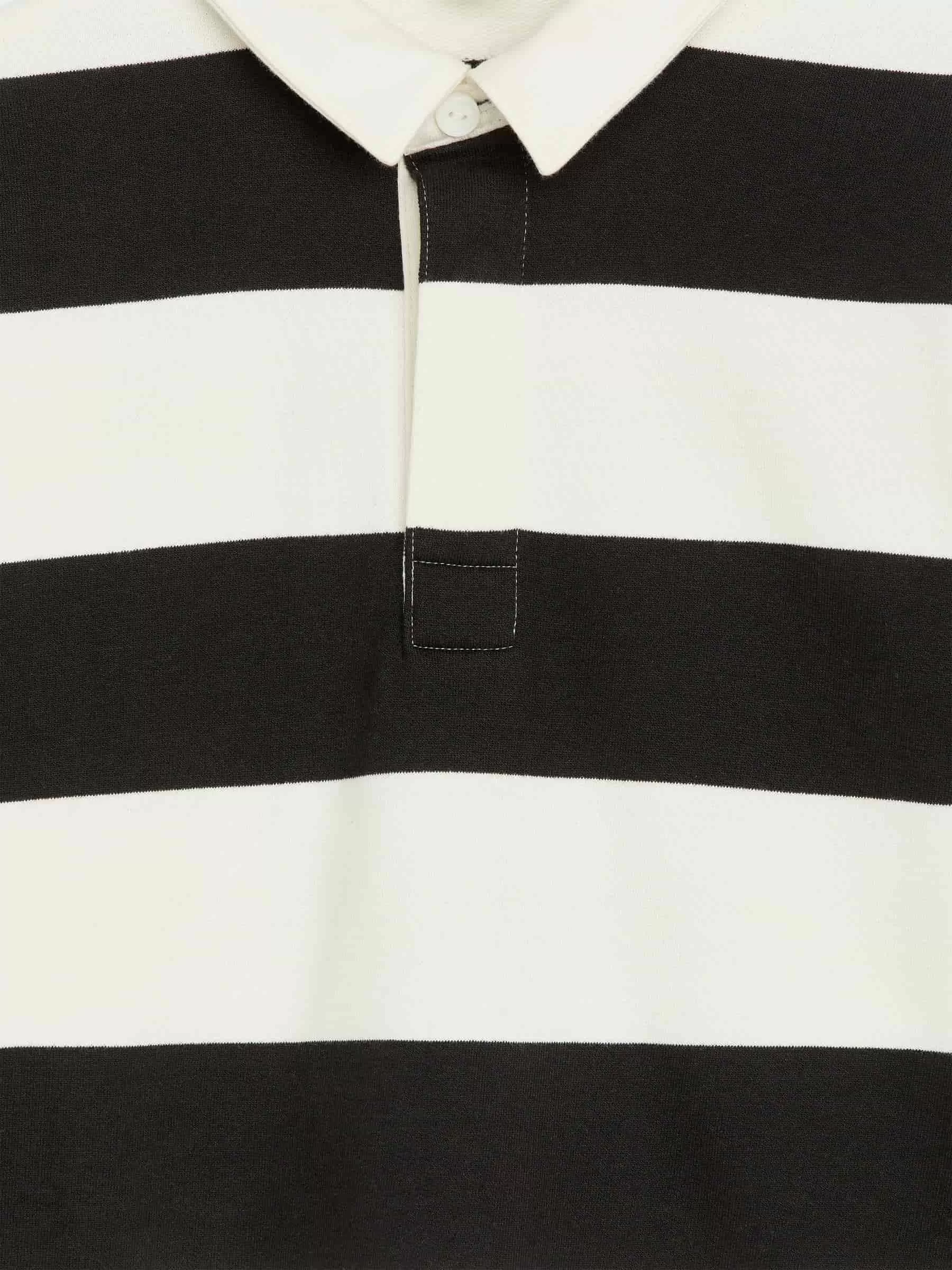 Rugby shirt with a relaxed fit and slit at sides. Styled with a hidden half button-up front and ribbed cuffs.