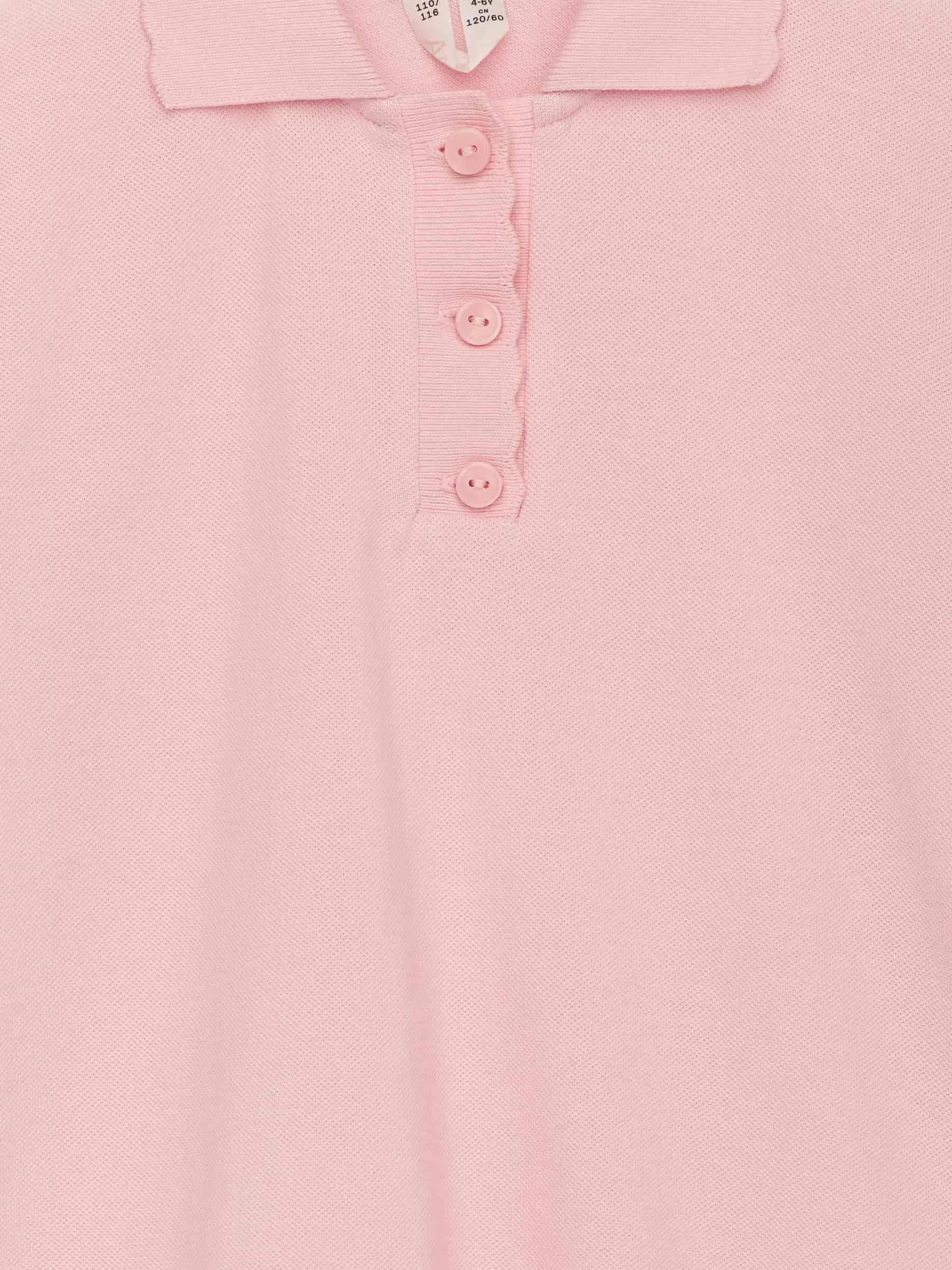 Short-sleeve polo shirt in cotton pique. Styled with scallop-edge details at the ribbed collar and at the half placket. Three buttons.
