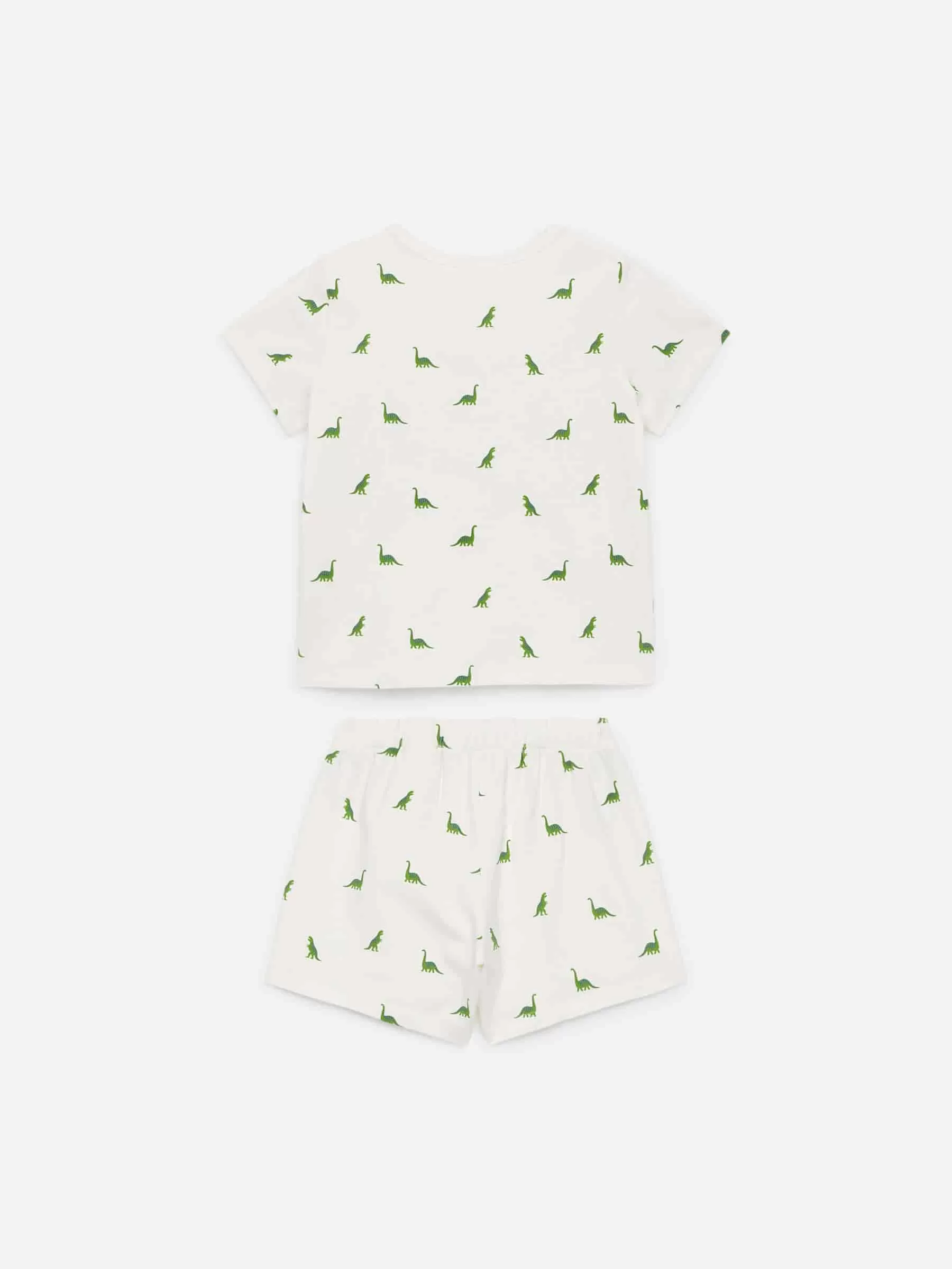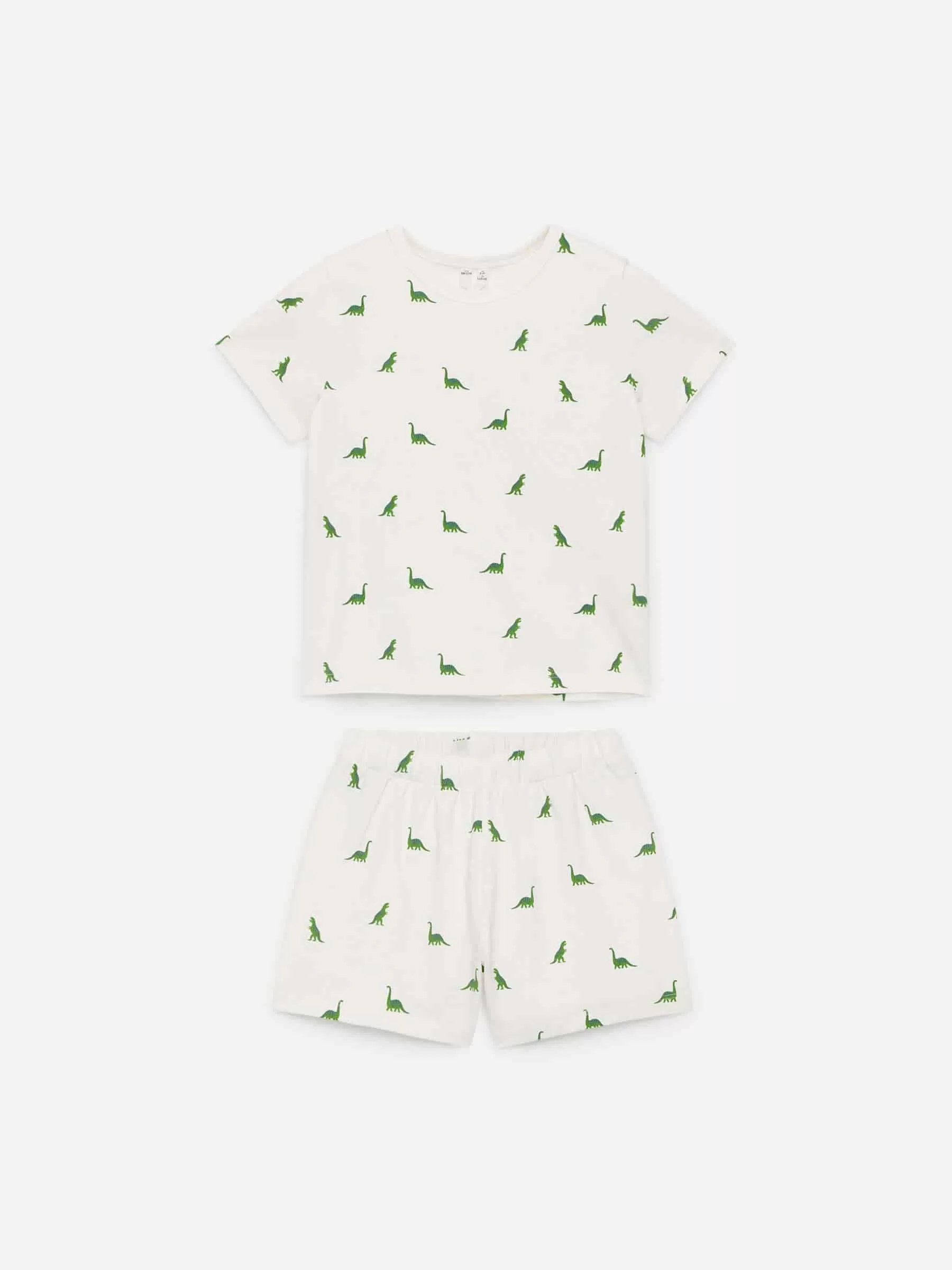 Soft pyjama set sewn from cotton jersey with a delicate ribbed texture. The set includes a regular-fit T-shirt and a pair of shorts with an elasticated waist.