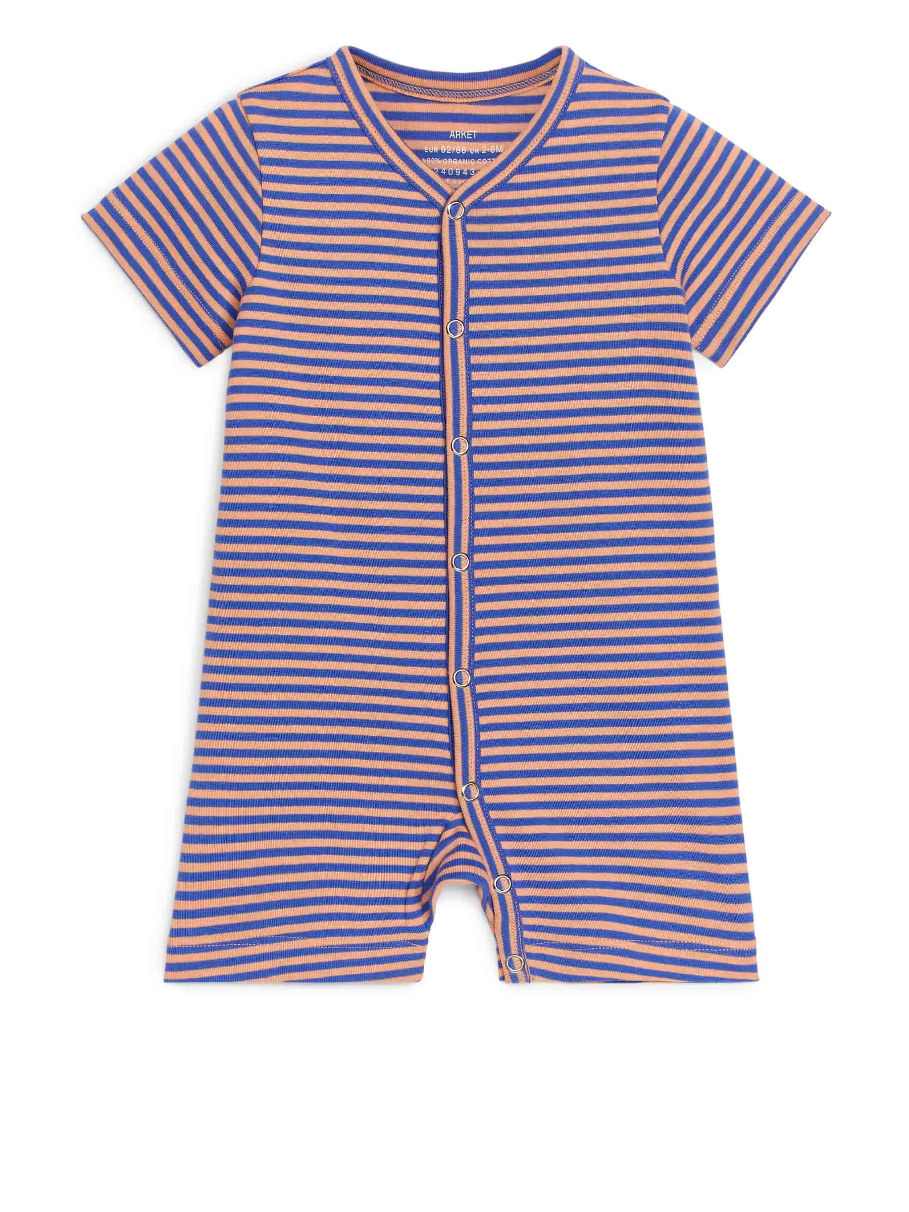 All-in-one pyjama made from soft cotton jersey. Styled with short sleeves and legs. Snap buttoning from top to toe for easy dressing.