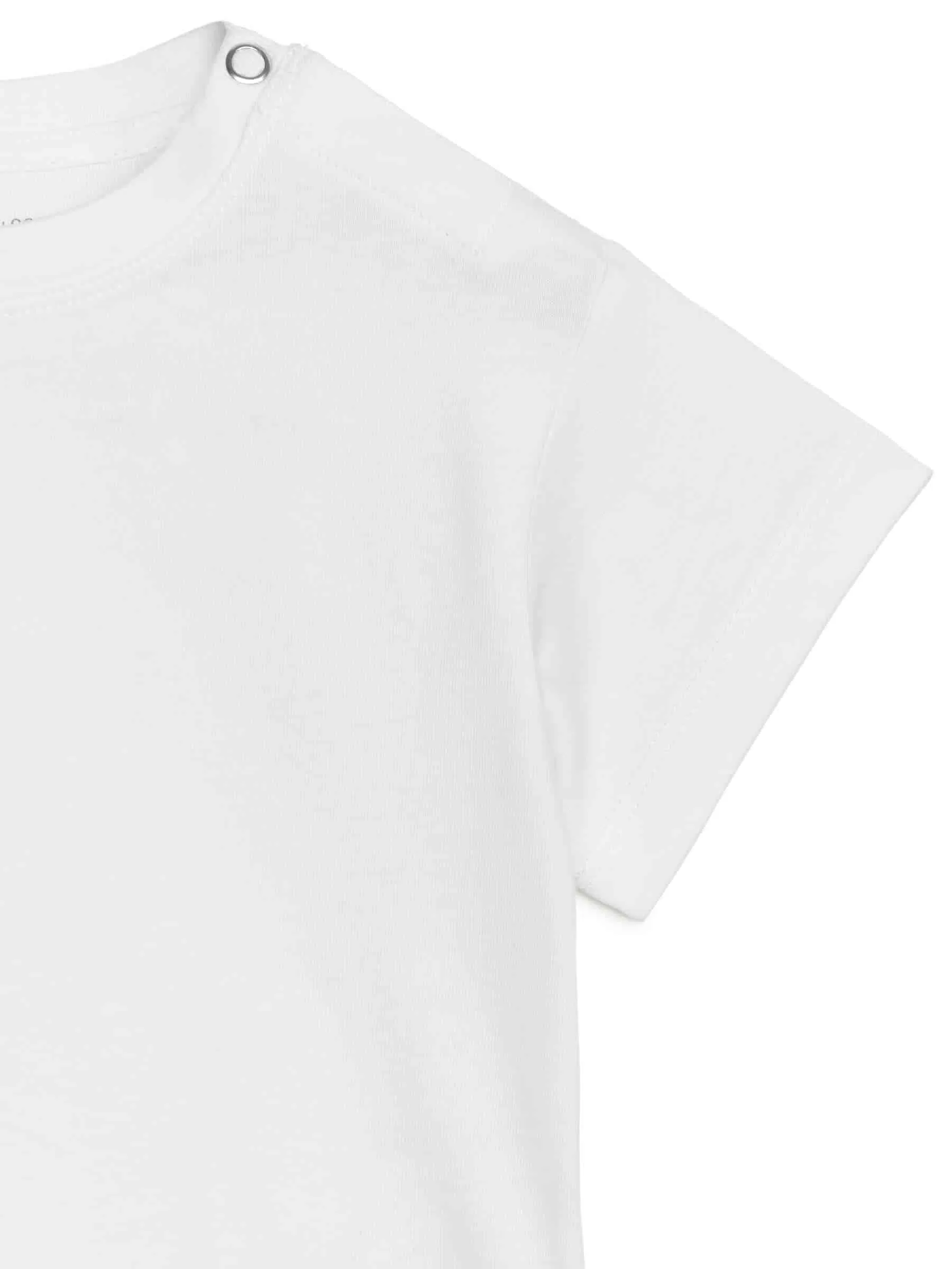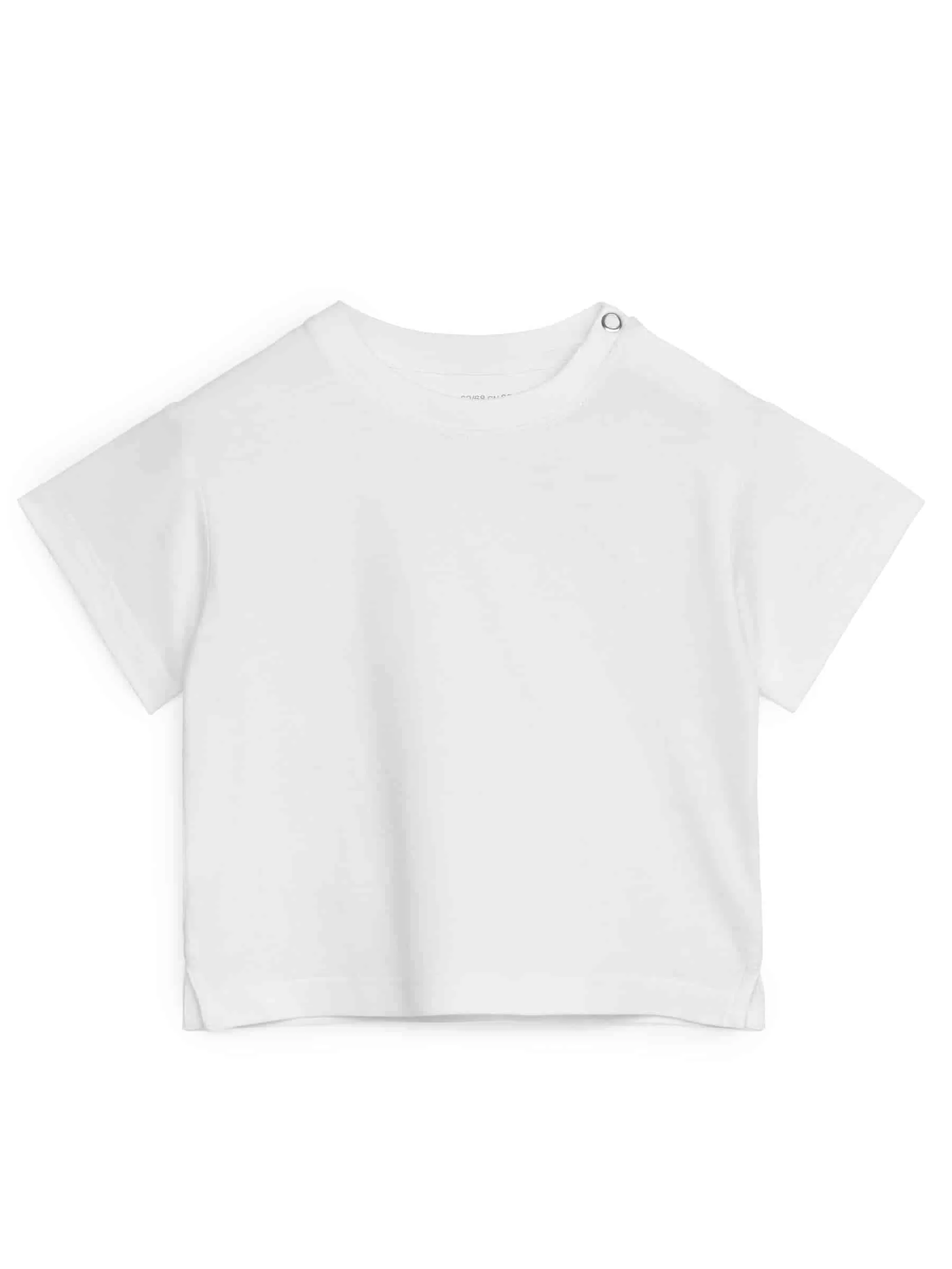 Short-sleeve T-shirt crafted from a soft single jersey made of cotton. Cut for a loose fit with slightly dropped shoulders. Snap buttoning at left-hand shoulder for easy dressing. Slits at side seams.