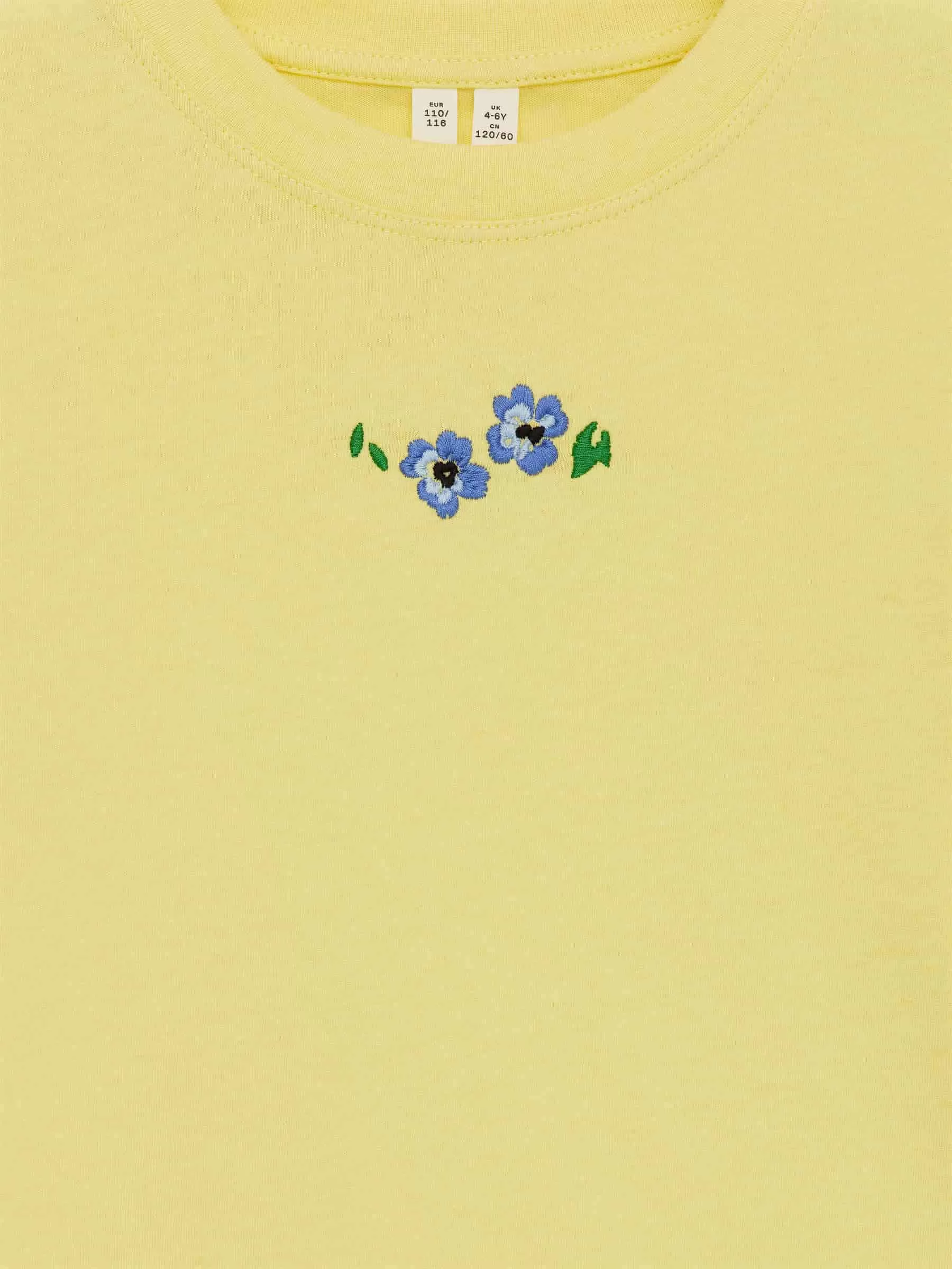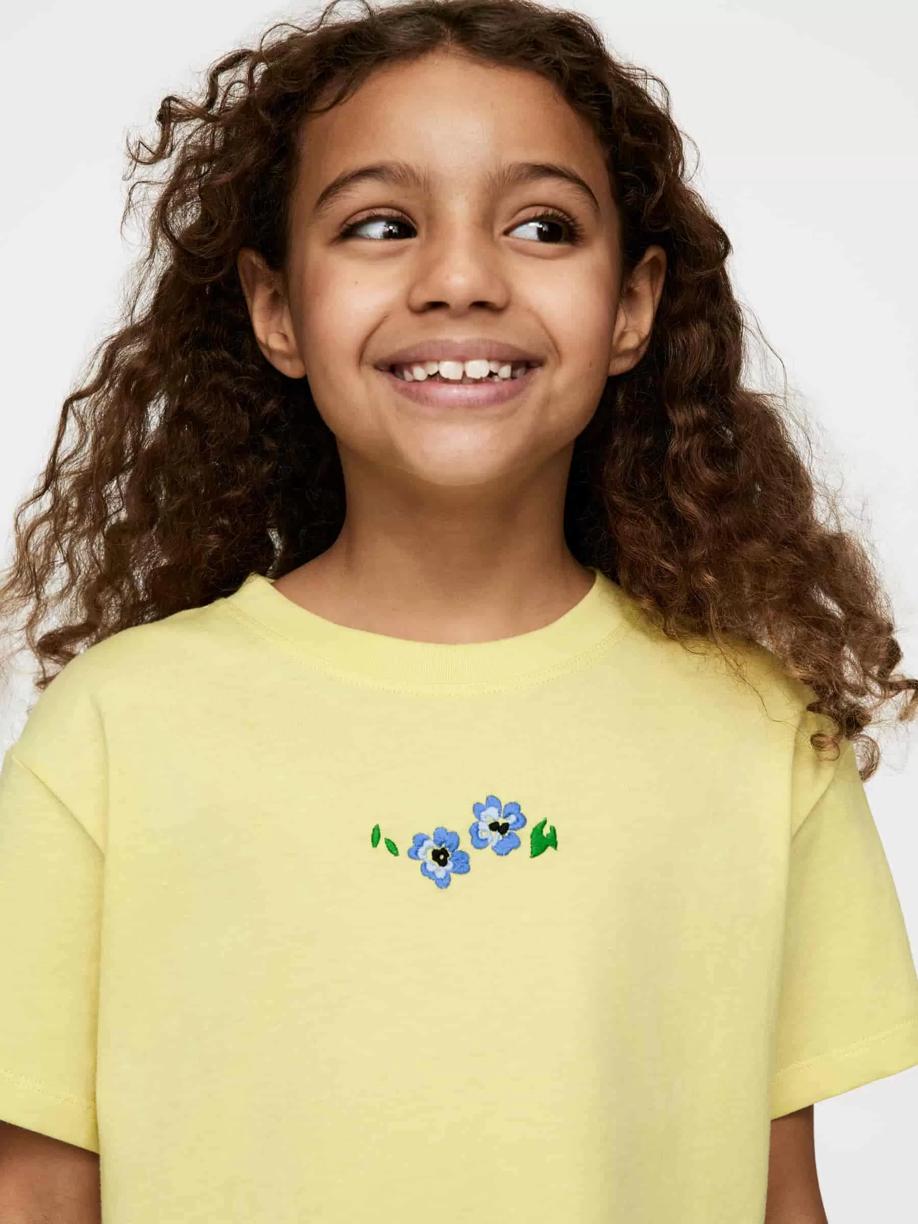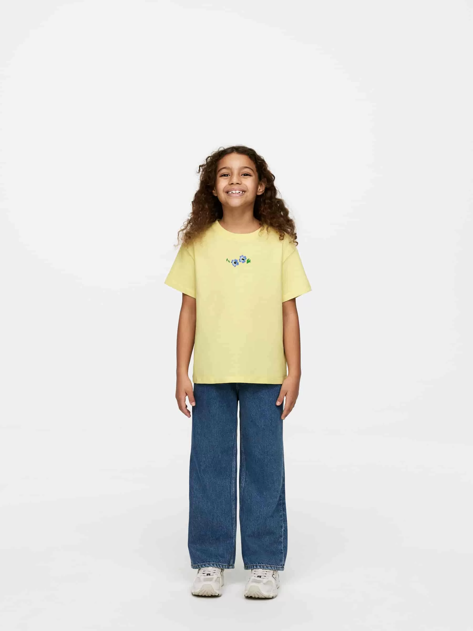 Smooth T-shirt cut for a wide fit with slightly dropped shoulders. It is made from cotton jersey and finished with a ribbed neckline.