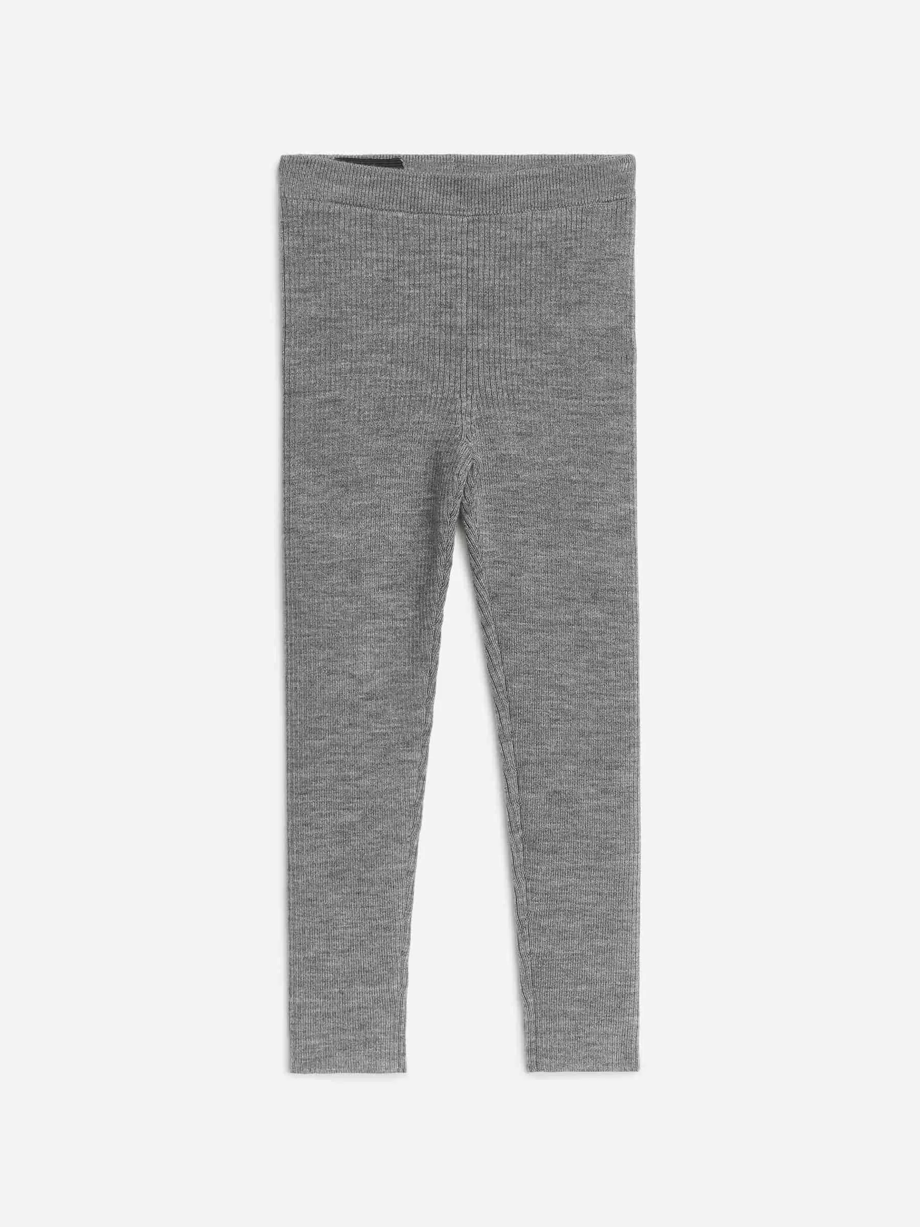 Warming leggings rib-knitted from wool. A portion of polyamide and elastane has been added to the yarn for durability and good recovery of the fabric. Adjustable elastic waistband. Regular fit. These leggings contain 86% RWS wool, certified by control union 862581. Products certified to the Responsible Wool Standard (RWS) contain wool fiber from farms independently certified to animal welfare and land management requirements.