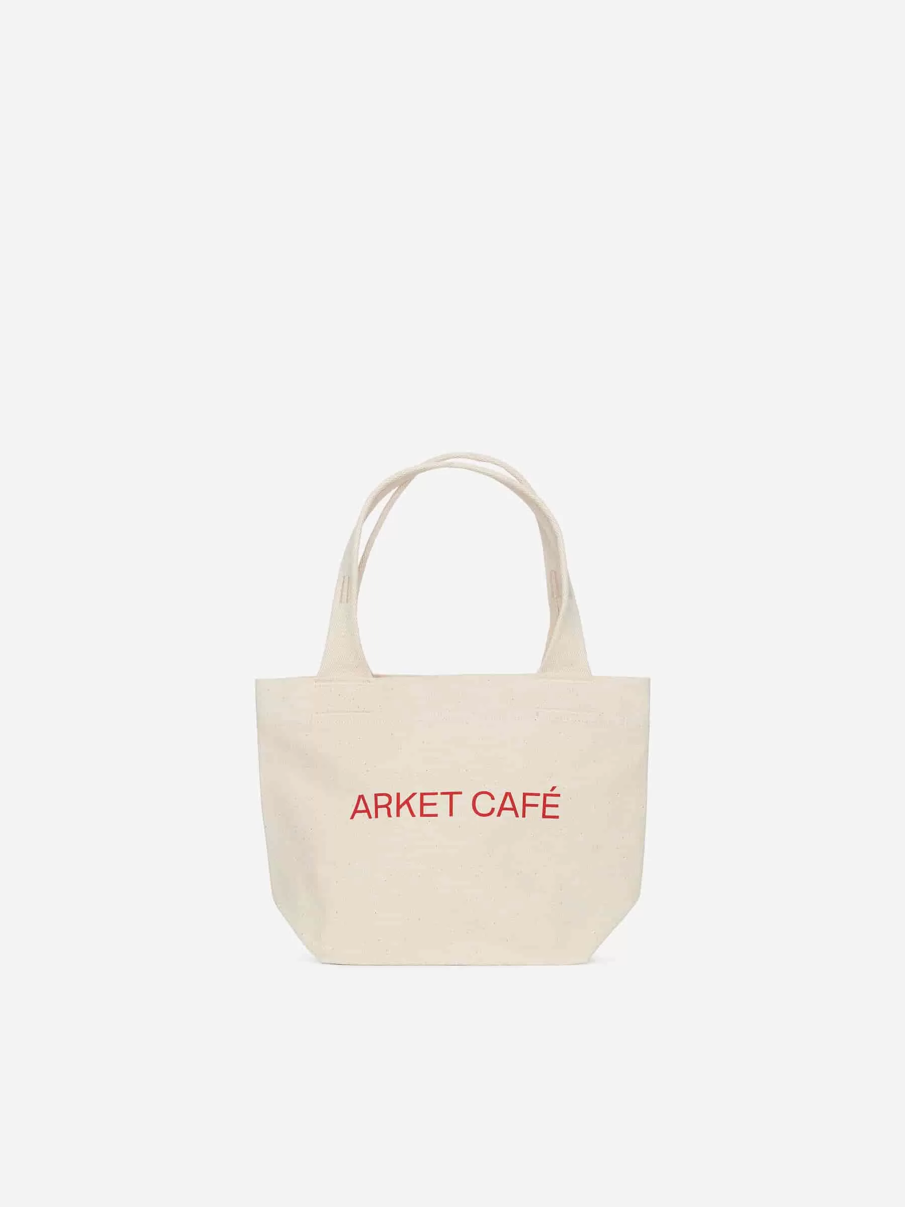Cotton canvas tote in a size perfect to fit your lunch box. Printed motif on one side, and text print on the other. Dimensions 24 cm x 21 cm x 12 cm. This product is a special edition of the ARKET CAFÉ collection featuring illustrations by Olga Prader.