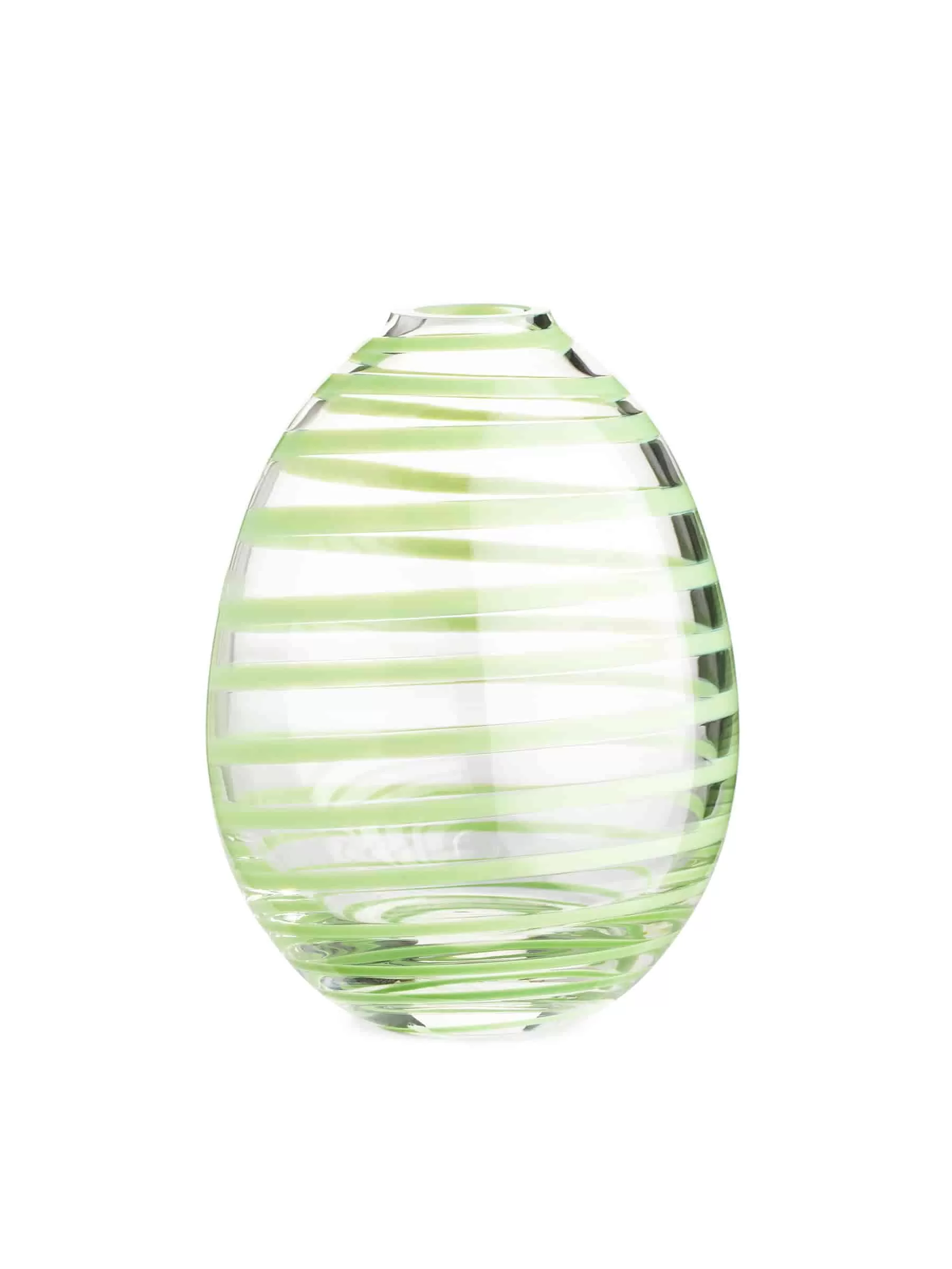 Mini glass vase designed with an egg-like shape. Featuring a striped pattern. Height 11.5 cm, width 8.5 cm.