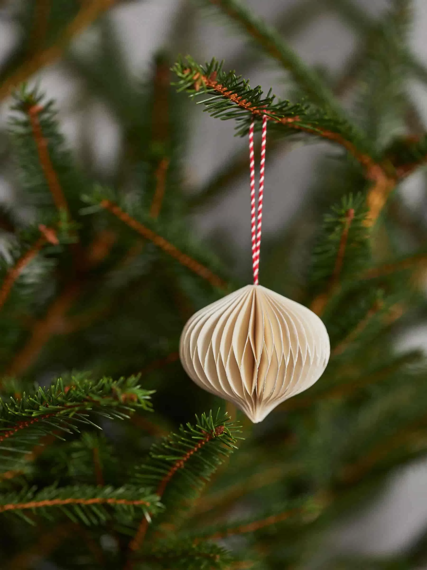 Honeycomb ornaments handmade from sturdy paper. A cotton string for easy hanging. Set of two. Diameter 6 cm.