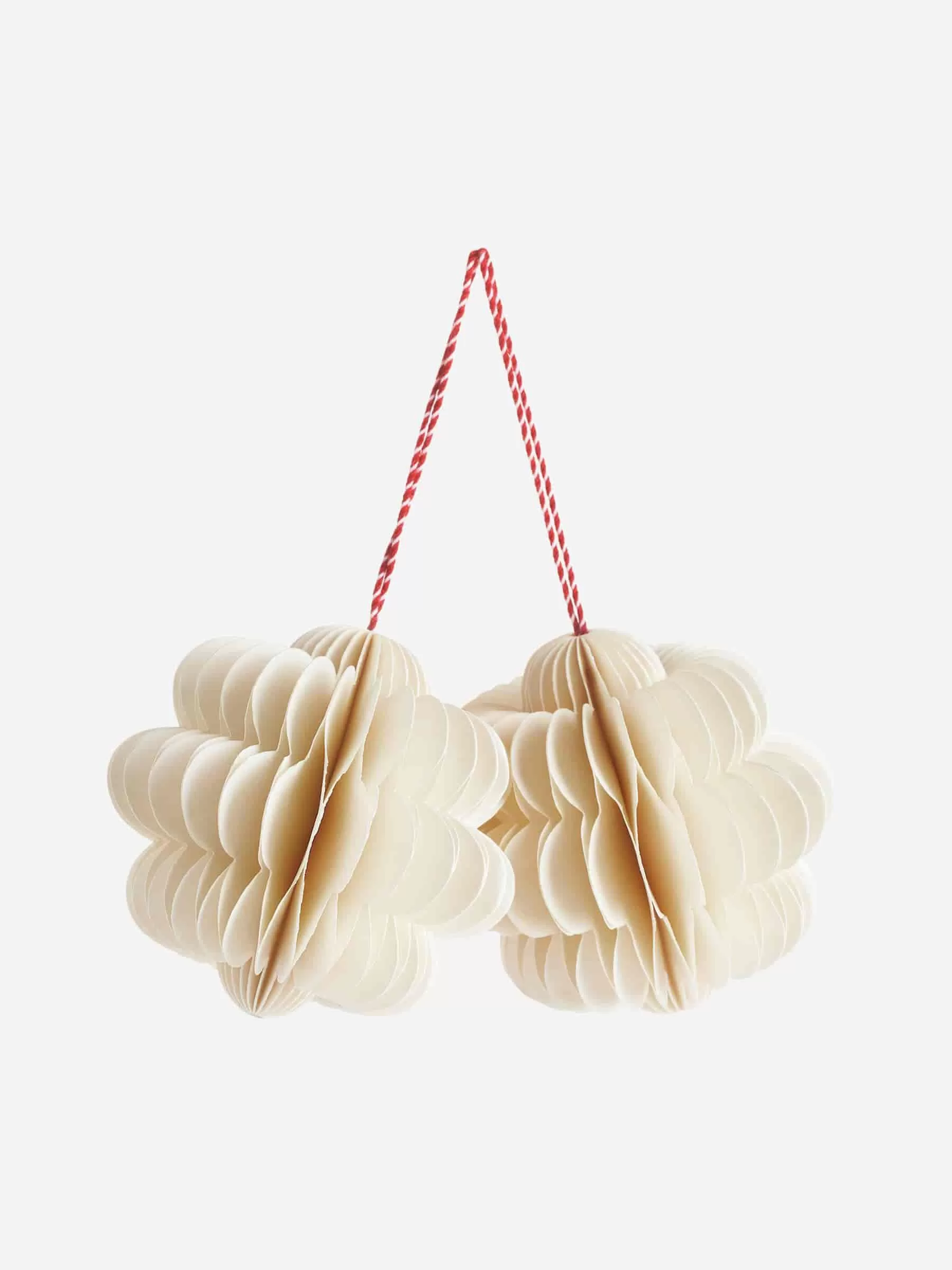 Honeycomb ornaments handmade from sturdy paper with ribbon for easy hanging. Sold in set of two. Height 75 mm, string excluded.