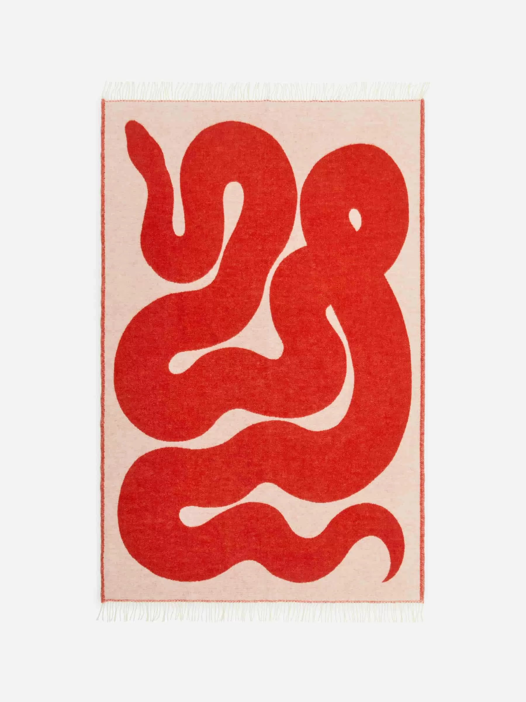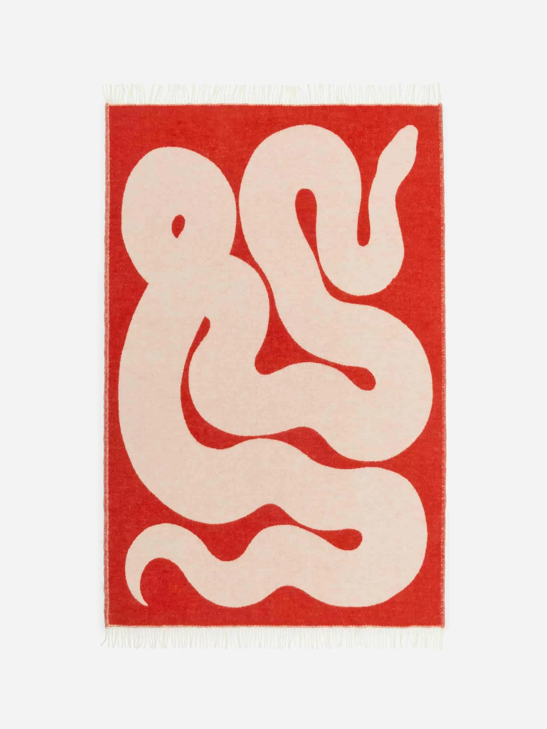 Jacquard-woven blanket made from warming lambswool. The colours of the pattern are mirrored on the opposite side. Fringes along the shorter edges. Measurements 200 cm x 130 cm.