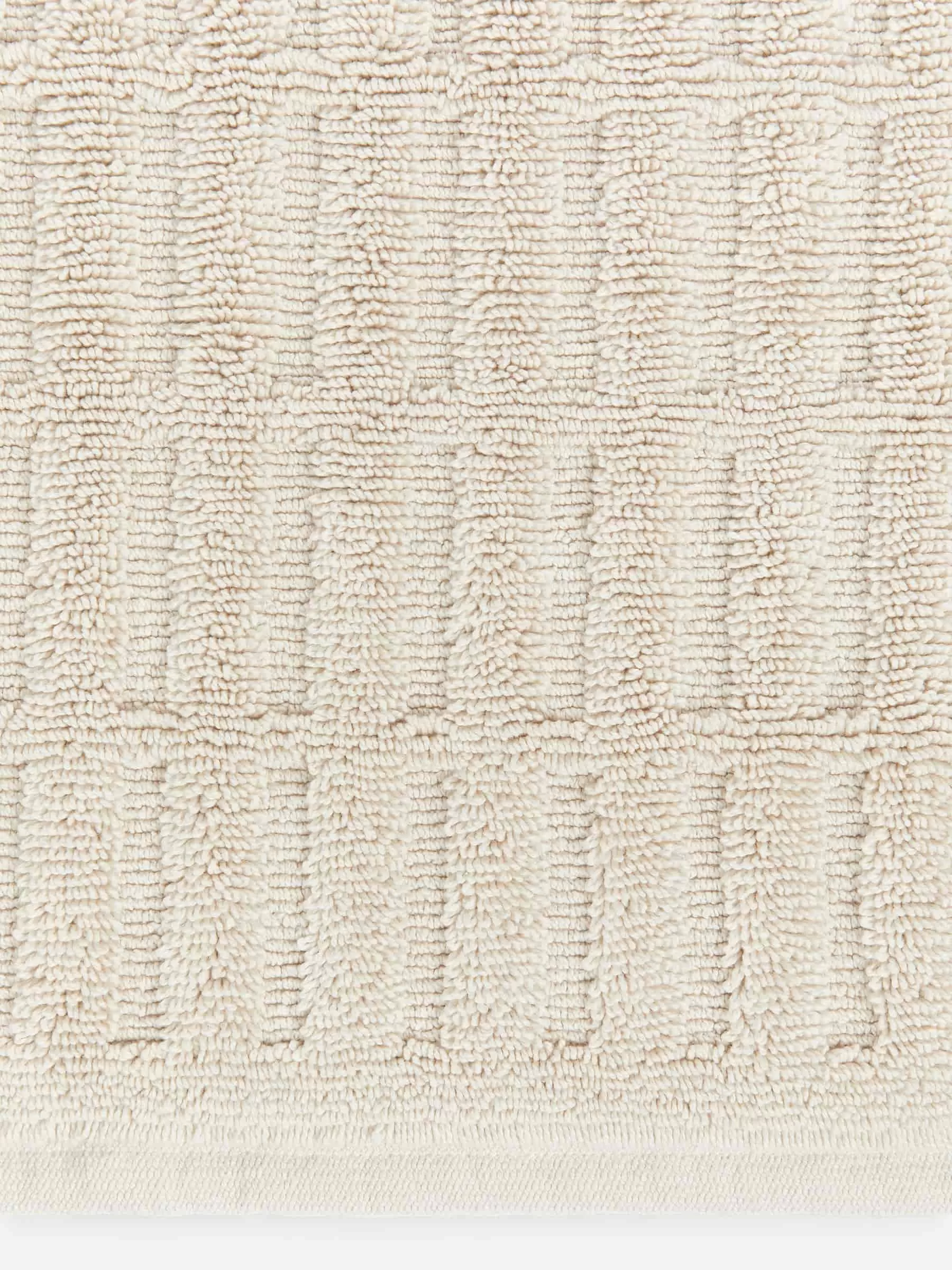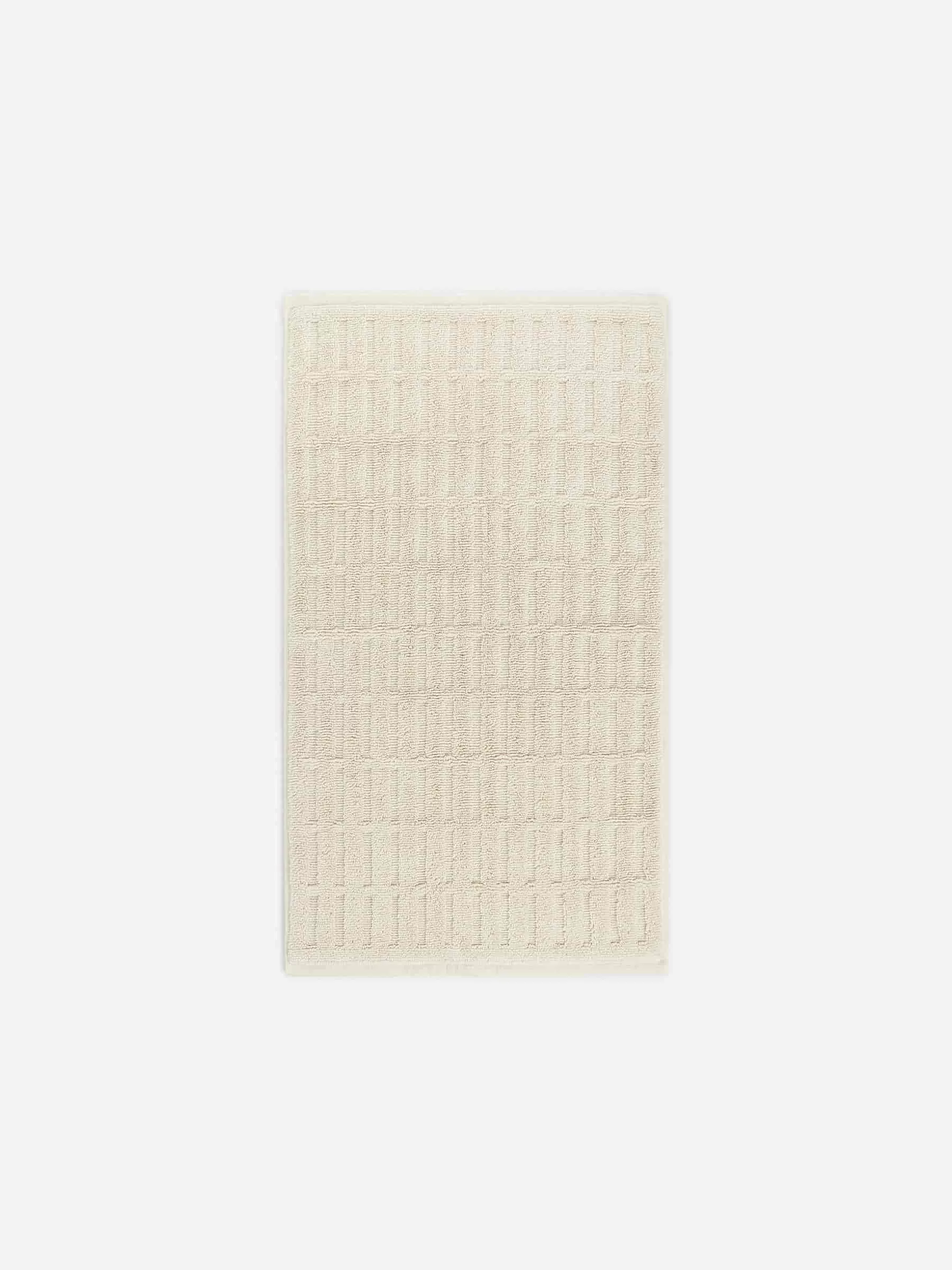 Large bath mat made from a cotton terry cloth, featuring a grid pattern. Measurements 50 cm x 90 cm.