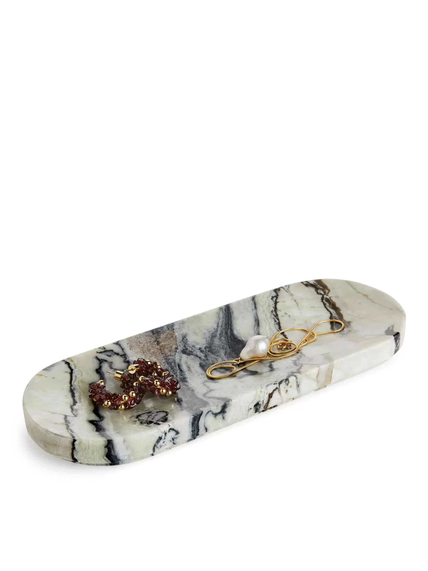 Oval marble tray. Length 24.5 cm, width 9.1 cm. As marble is a natural material, the colour and texture of each product may vary.