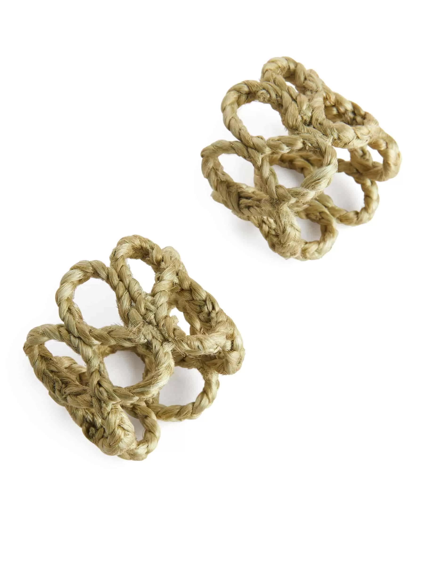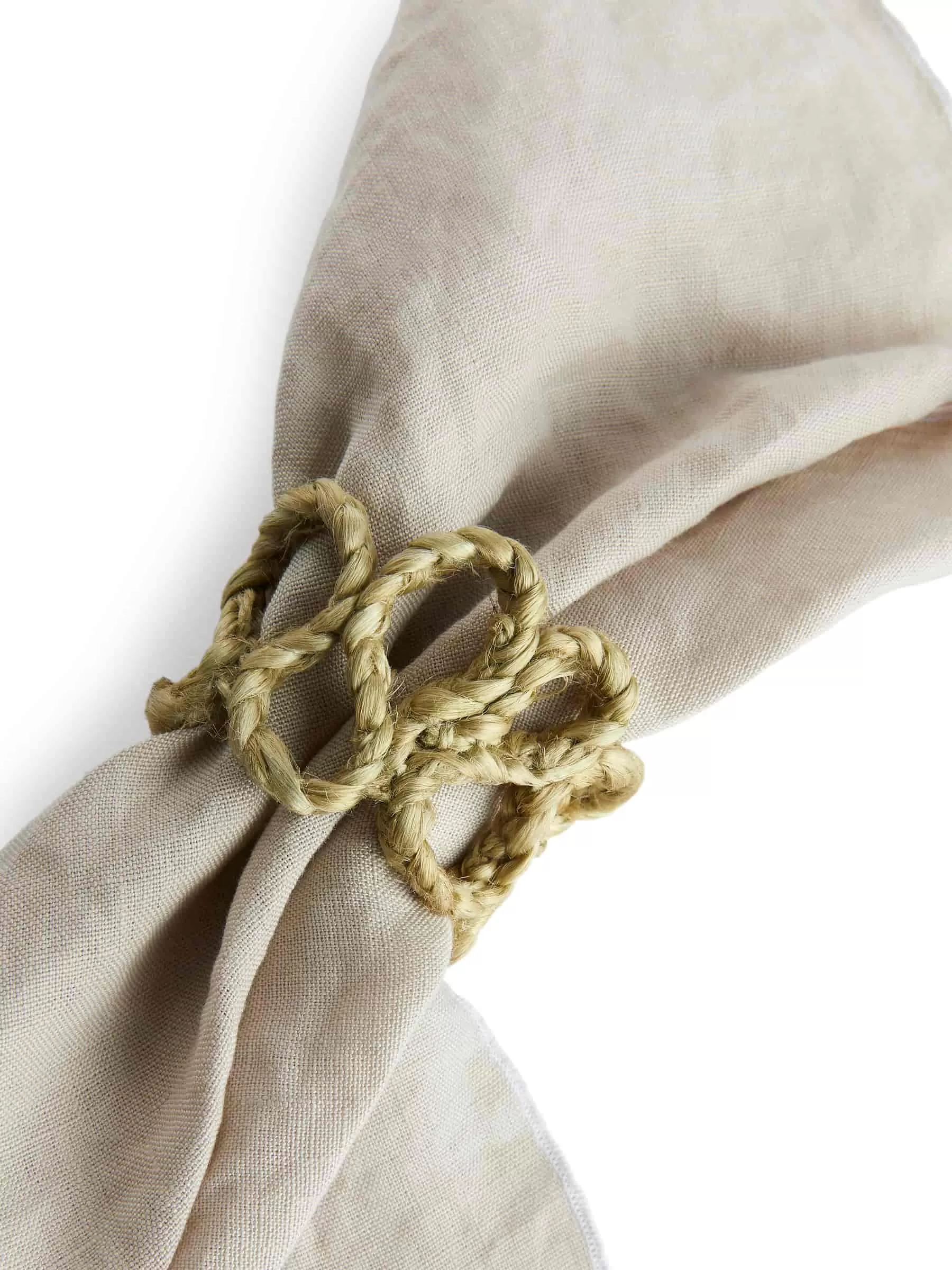 Napkin rings in braided jute. Width 4.4 cm, height 4.6 cm., diameter 4.4 cm. Set of 2.