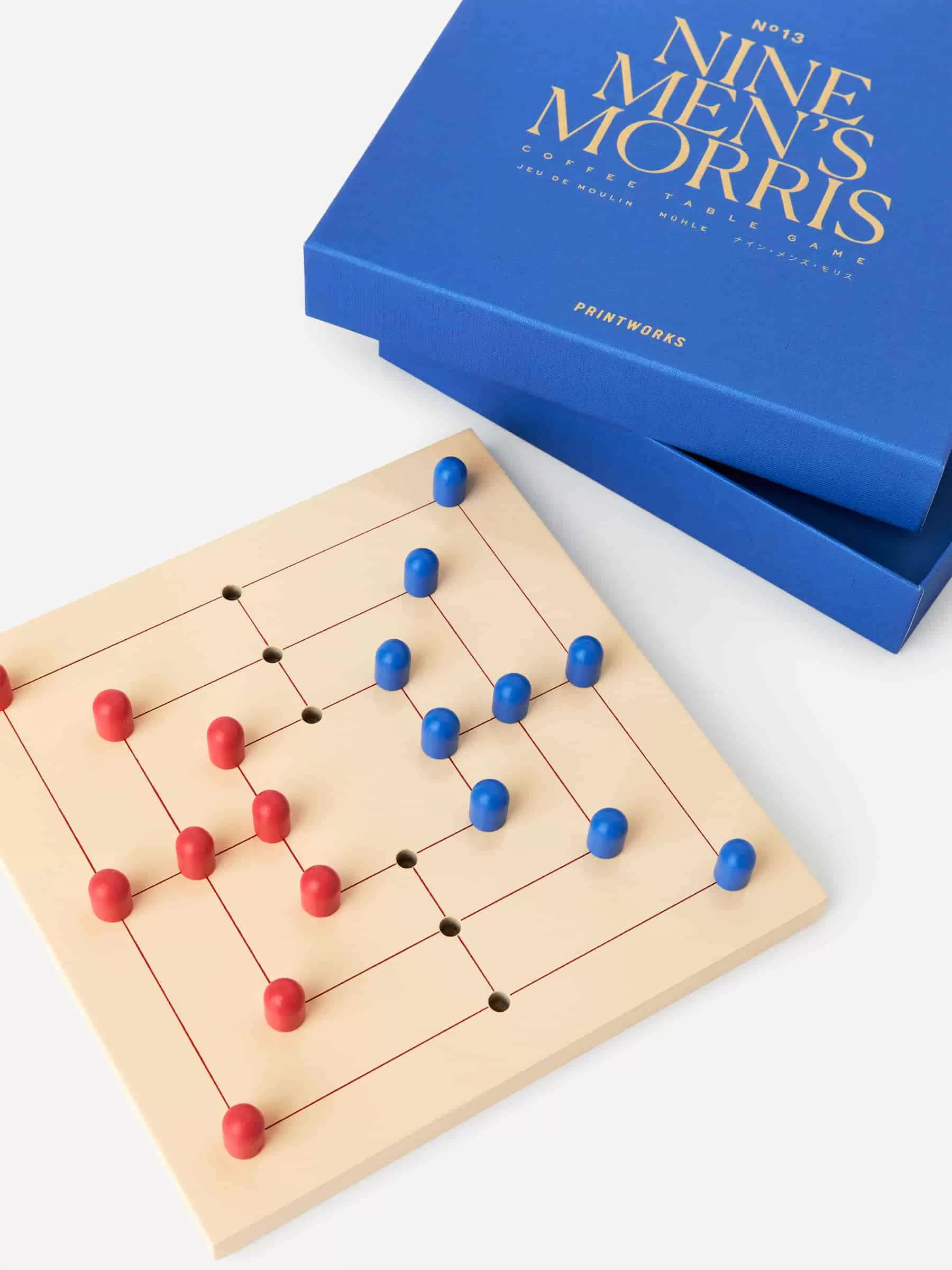 This reimagined Nine Men’s Morris game is manufactured by the Swedish lifestyle brand PRINTWORKS. The game set features a wooden board and nine playing pieces for each player. Suitable for two players, ages 5+.