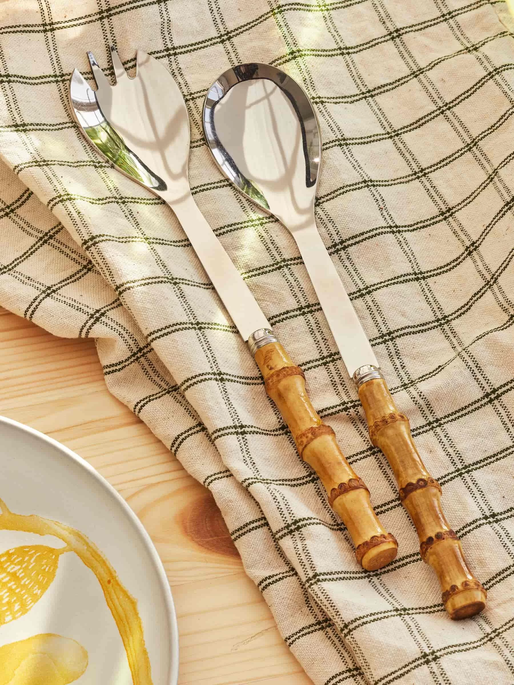 This beautiful two-piece set from French Sabre Paris is designed for serving salads. Ideal for both everyday use and festive get-togethers. The 18/10 stainless steel and bamboo construction add tactile interest to your table setting.