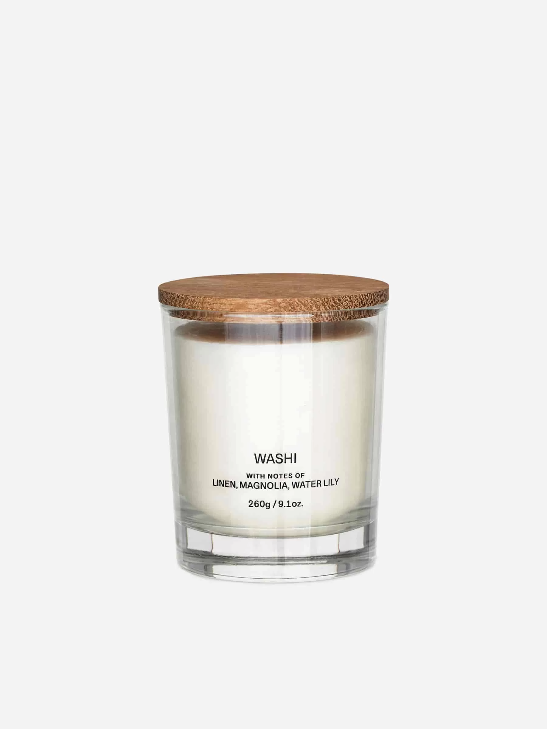 Scented candle in a glass container with a wooden lid. The candle is made from a blend of olive wax residue and rapeseed wax. 260 g. Burning time 60 hours.